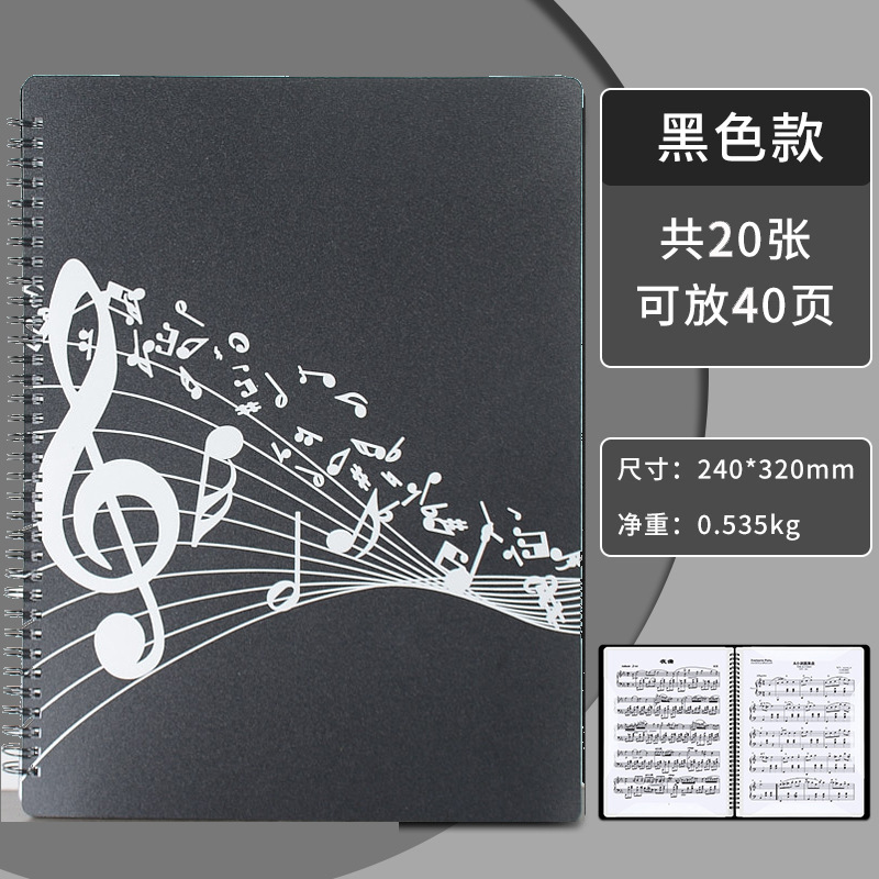 • 코일 A4-20 40 페이지 검은 음악 클립-직선 변경