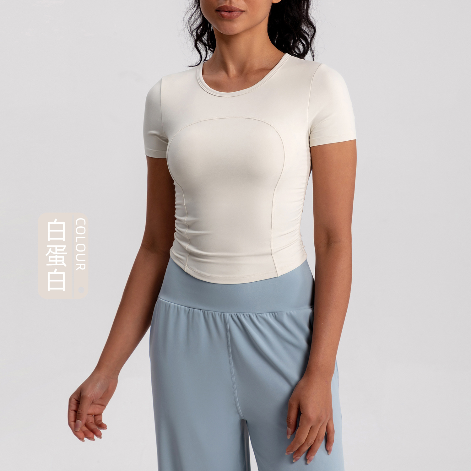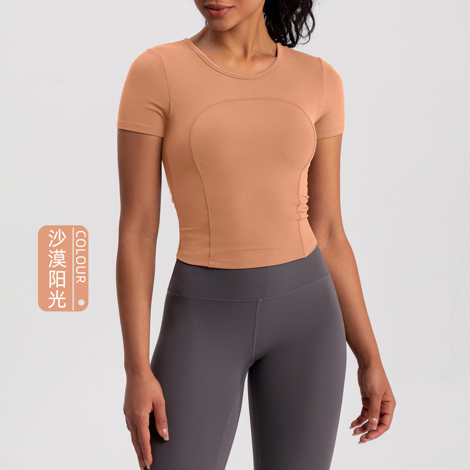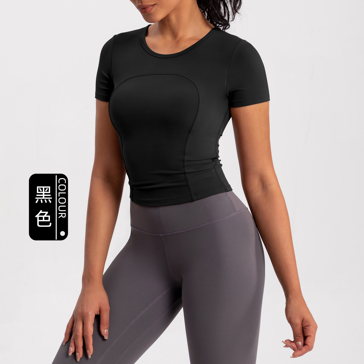 Athena lulu 여름 새로운 요가 옷 여자 가슴 패드 알몸 반팔 티셔츠 스포츠 달리기 피트니스 탑스토어 가기