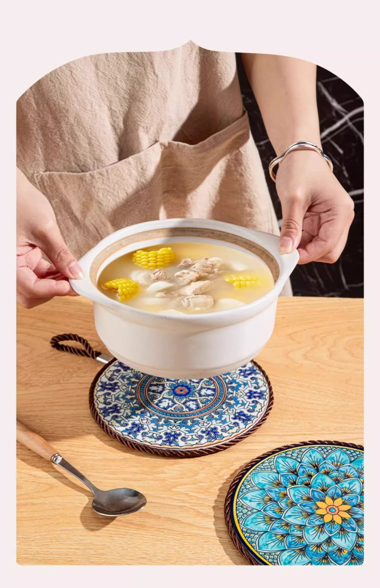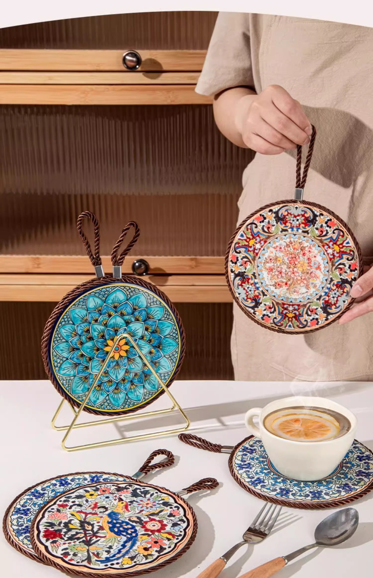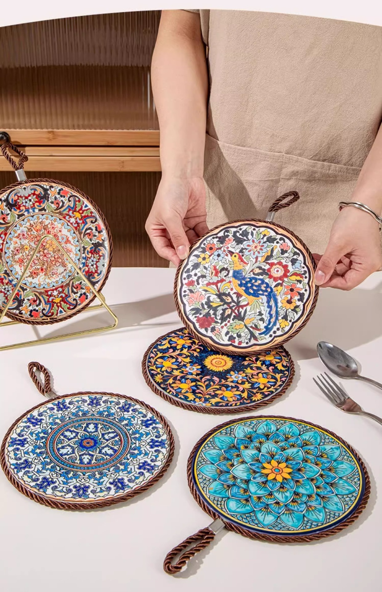 레트로 단열 패드 고온 저항하는 캐서롤 안티 스케일 패드 에나멜 팟 쿠션 세라믹 새로운 중국 스타일 미끄럼 방지 식탁 플레이트 쿠션스토어 가기