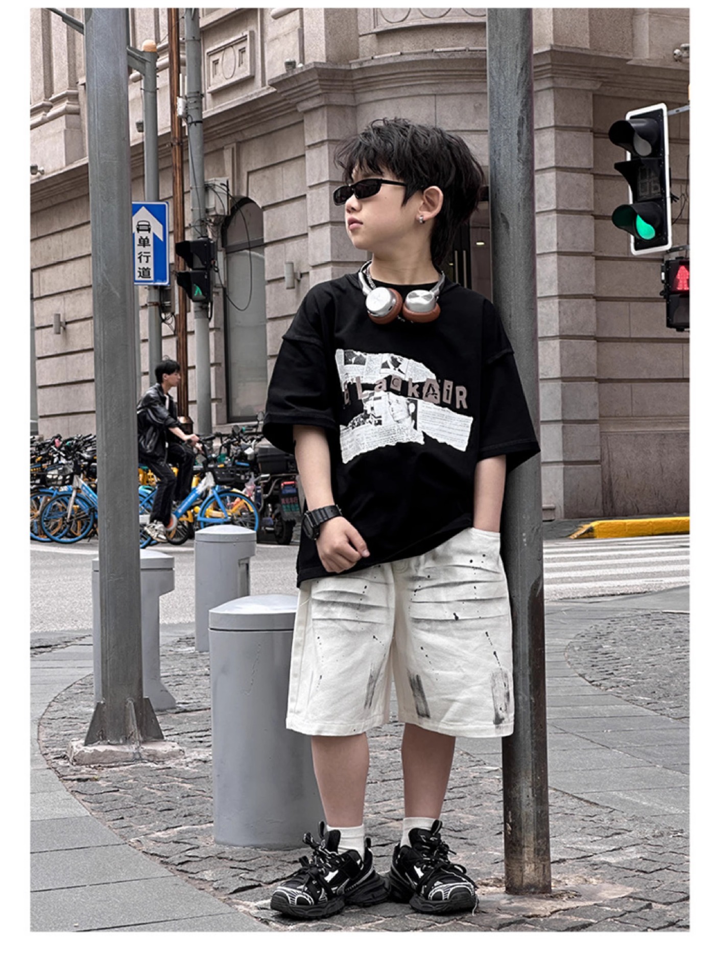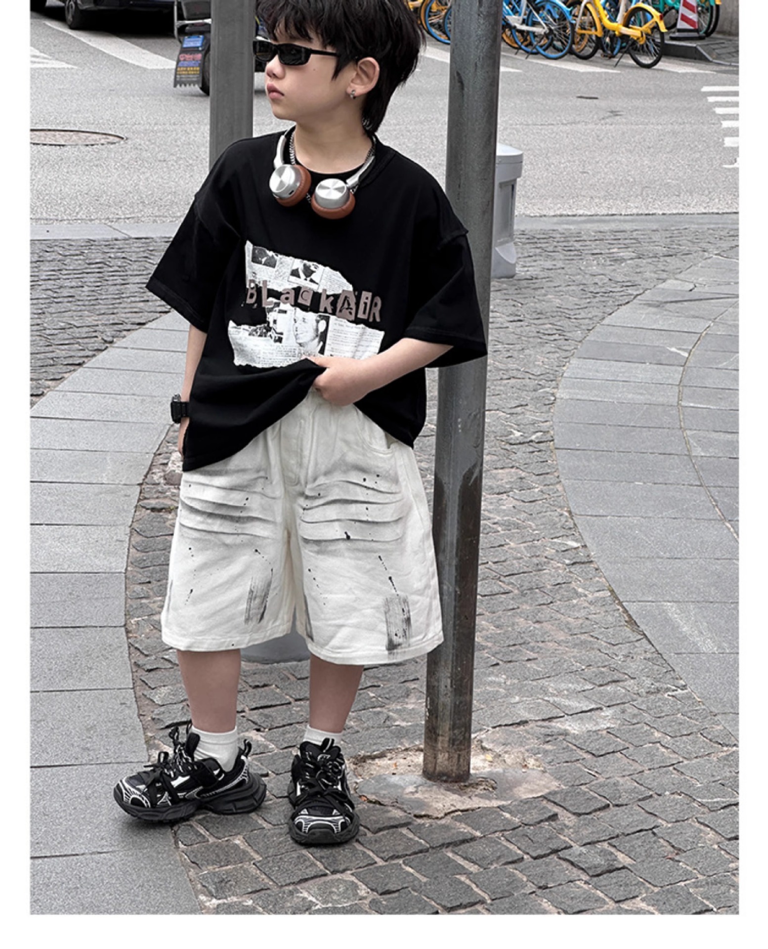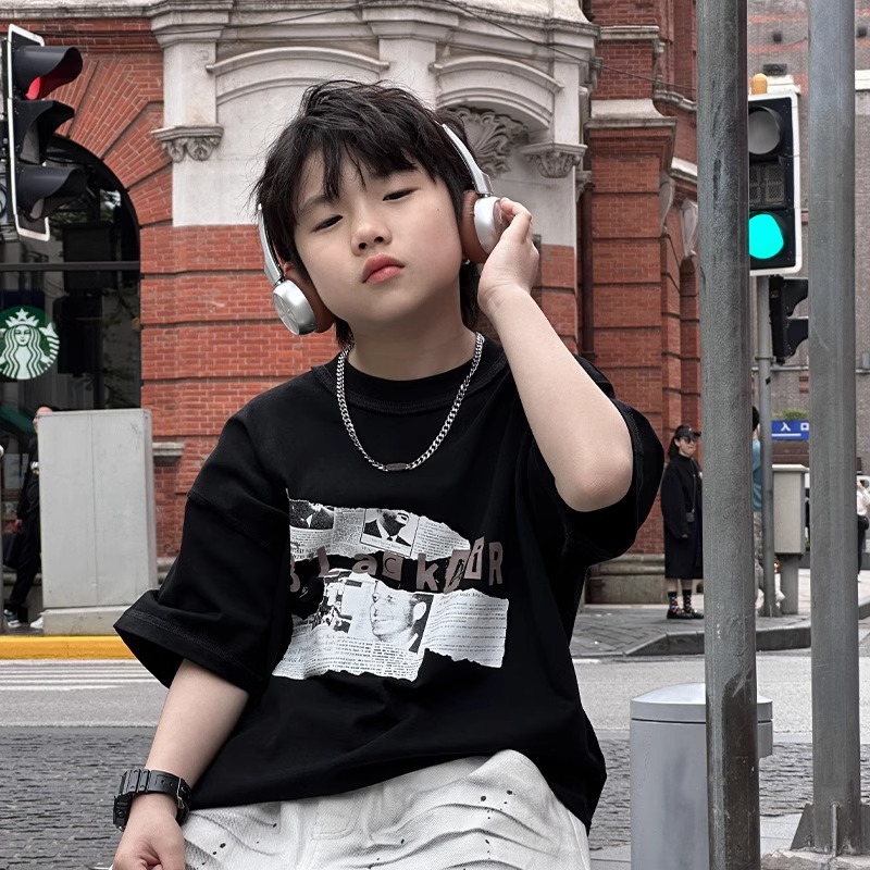 소년 반소매 티셔츠 여름 새 어린이 여름 코튼 톱 소년 중 · 대형 어린이 느슨한 반소매 한국식 트렌디 티셔츠스토어 가기