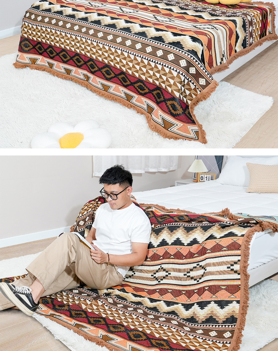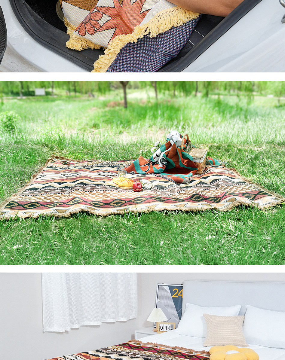 국경 간 재봉 술 야외 캠핑 담요 방습 피크닉 매트 자카드 술 장식 카펫면 매트 도매