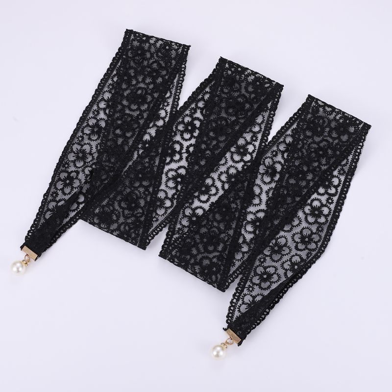 【品名】:蕾丝珍珠吊坠腰带女收腰装饰打结绑带
