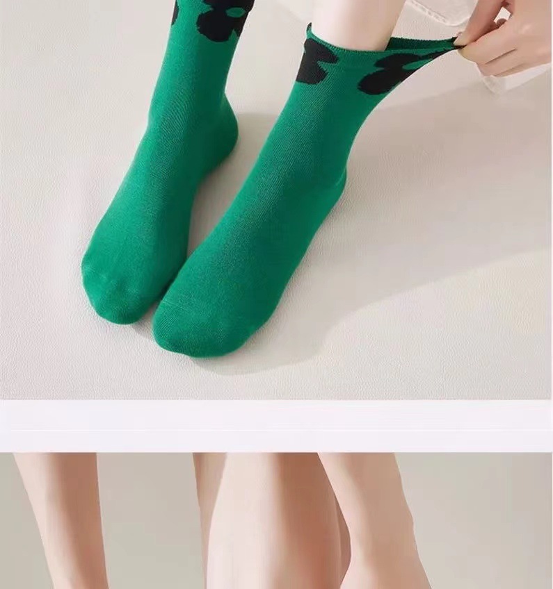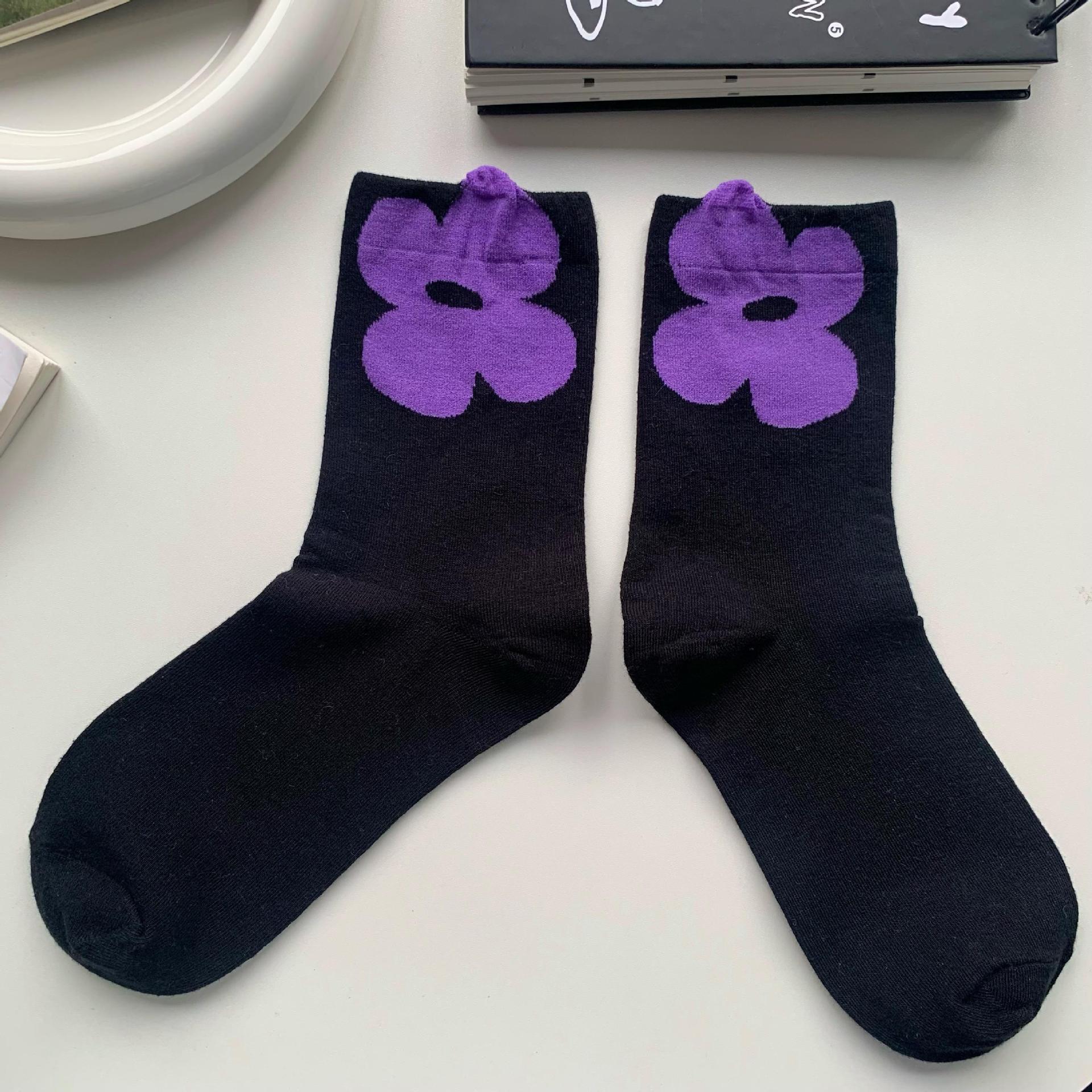 3 차원 꽃 중간 튜브 면 양말 여성 봄 가을 얇은 Ins 유행 그물 적외선 착용 한국식 긴 튜브 스택 양말 올매치스토어 가기