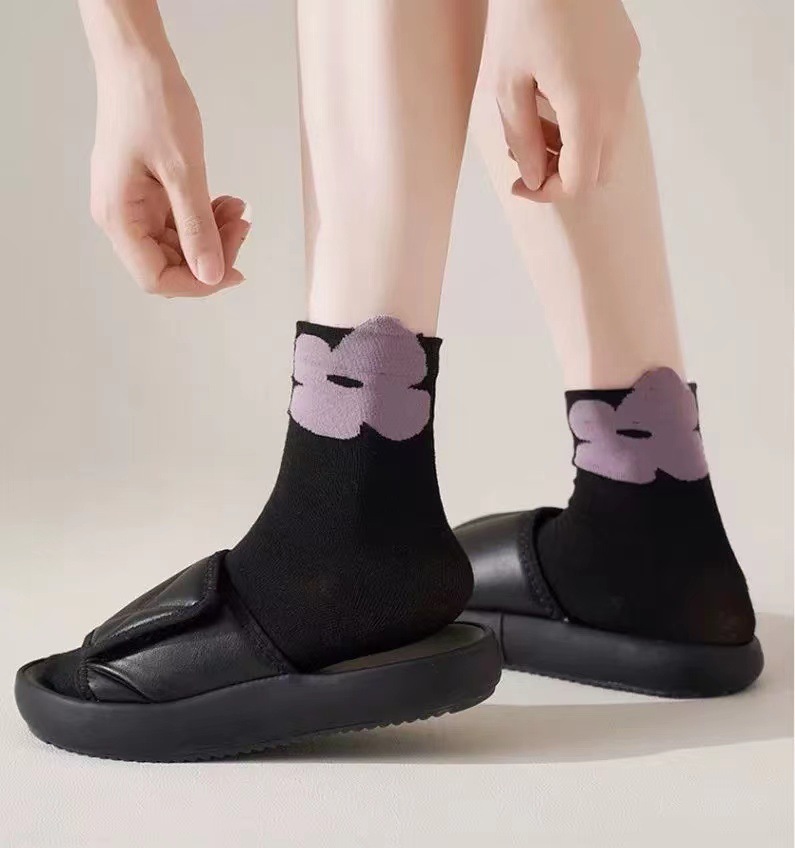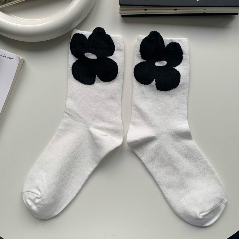 3 차원 꽃 중간 튜브 면 양말 여성 봄 가을 얇은 Ins 유행 그물 적외선 착용 한국식 긴 튜브 스택 양말 올매치