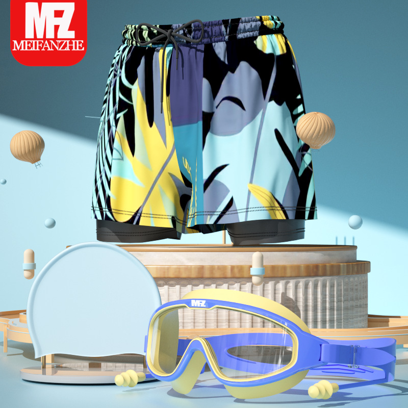 어린이 수영 트렁크 소년 전문 신속 건조 수영복 대형 어린이 이중층 방제 수영복 소년 장비 세트
