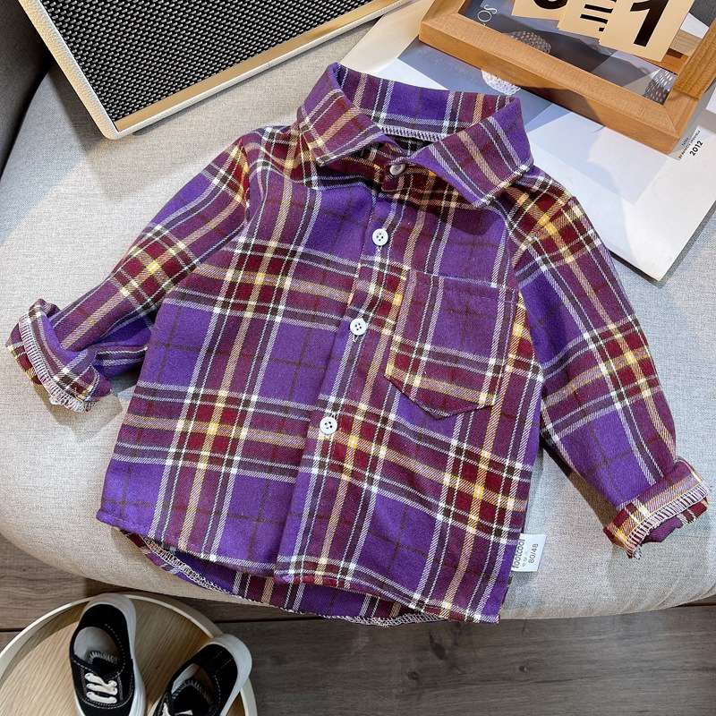• 보라색 격자 무늬 셔츠