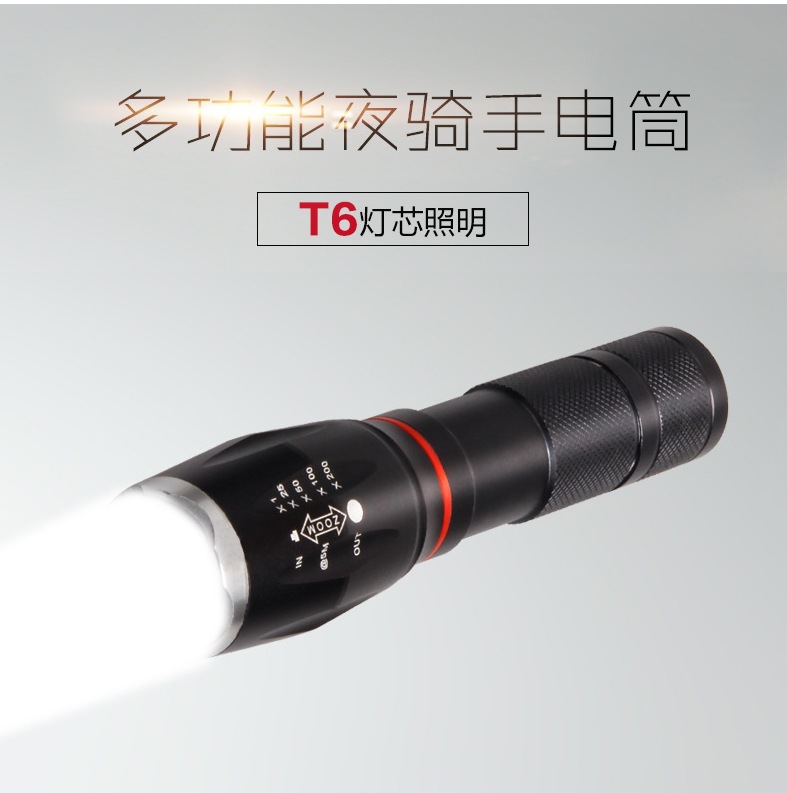 【档位】:6档 T6强光-T6 75% -T6 50%--T6闪光-T6 SOS-COB强光