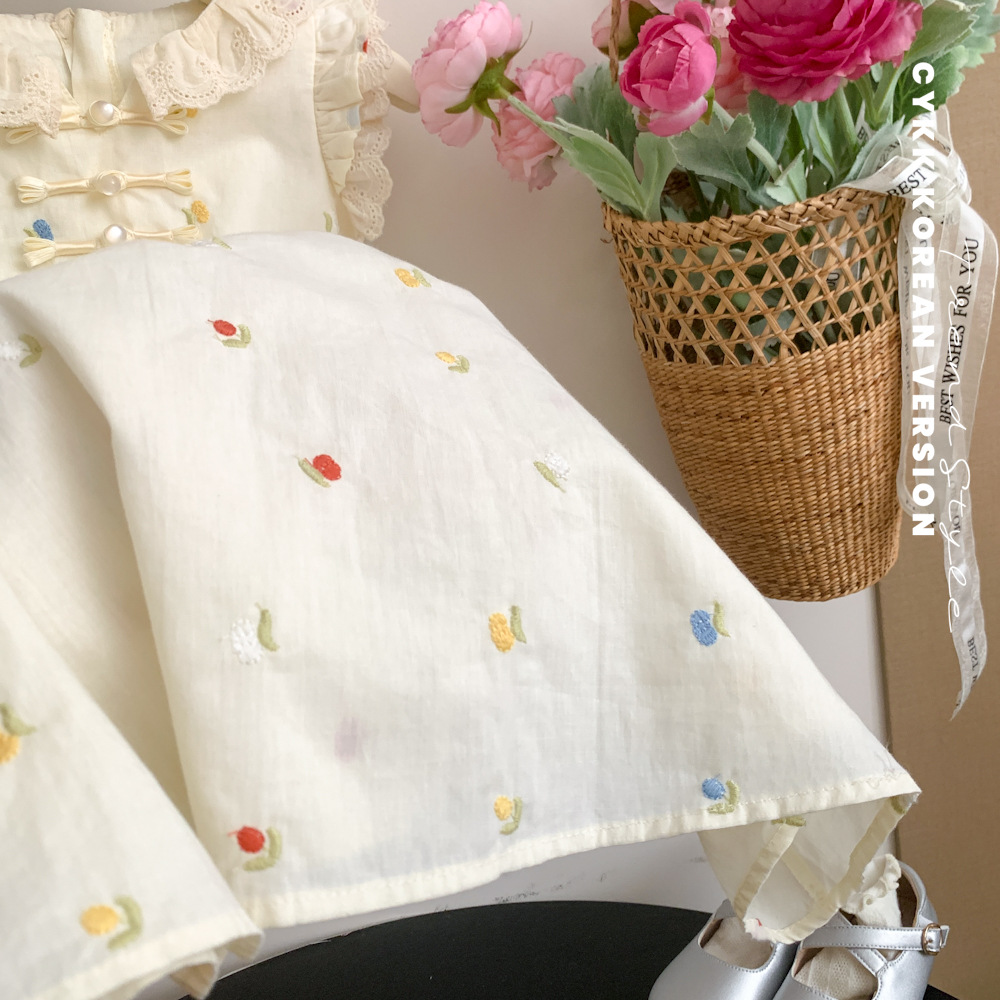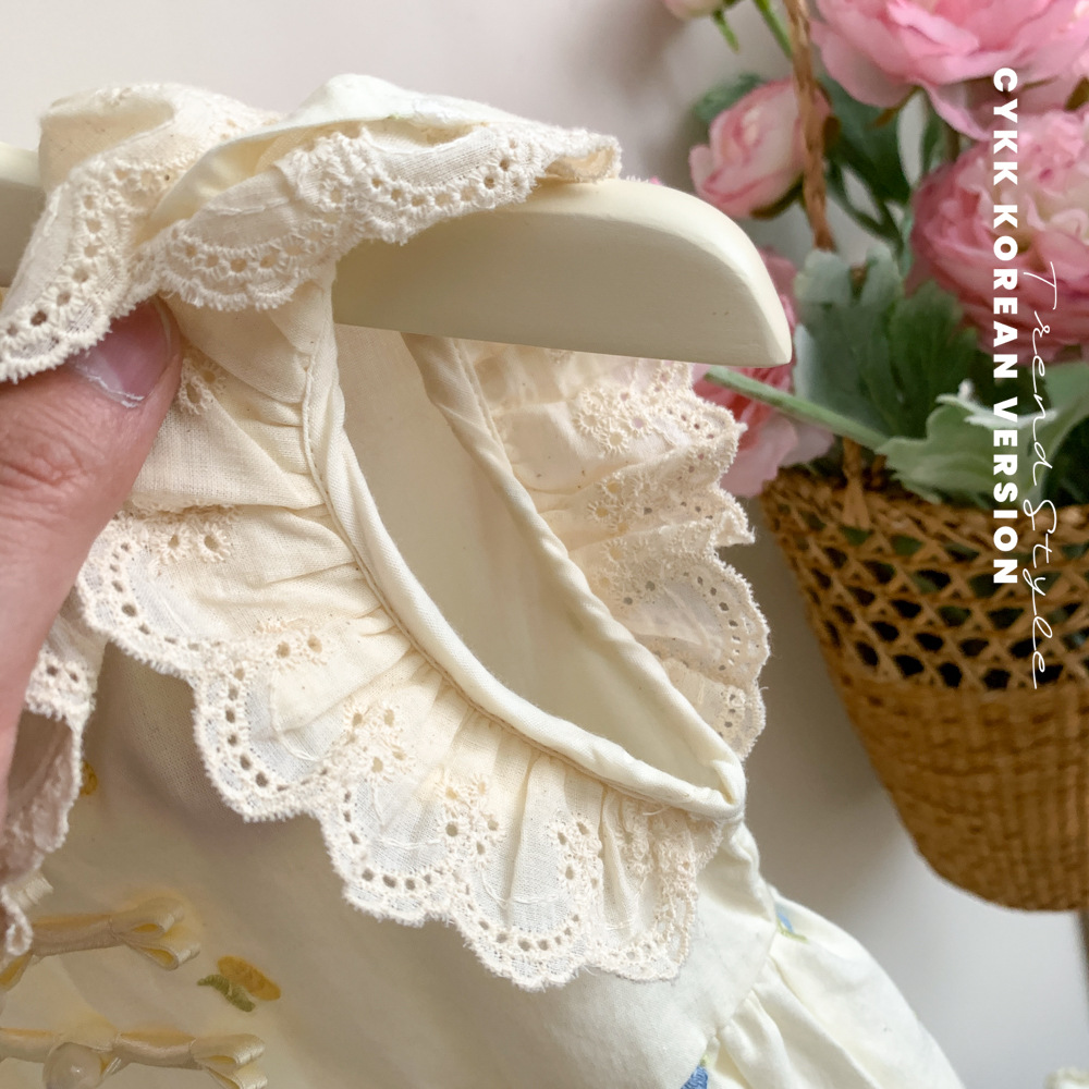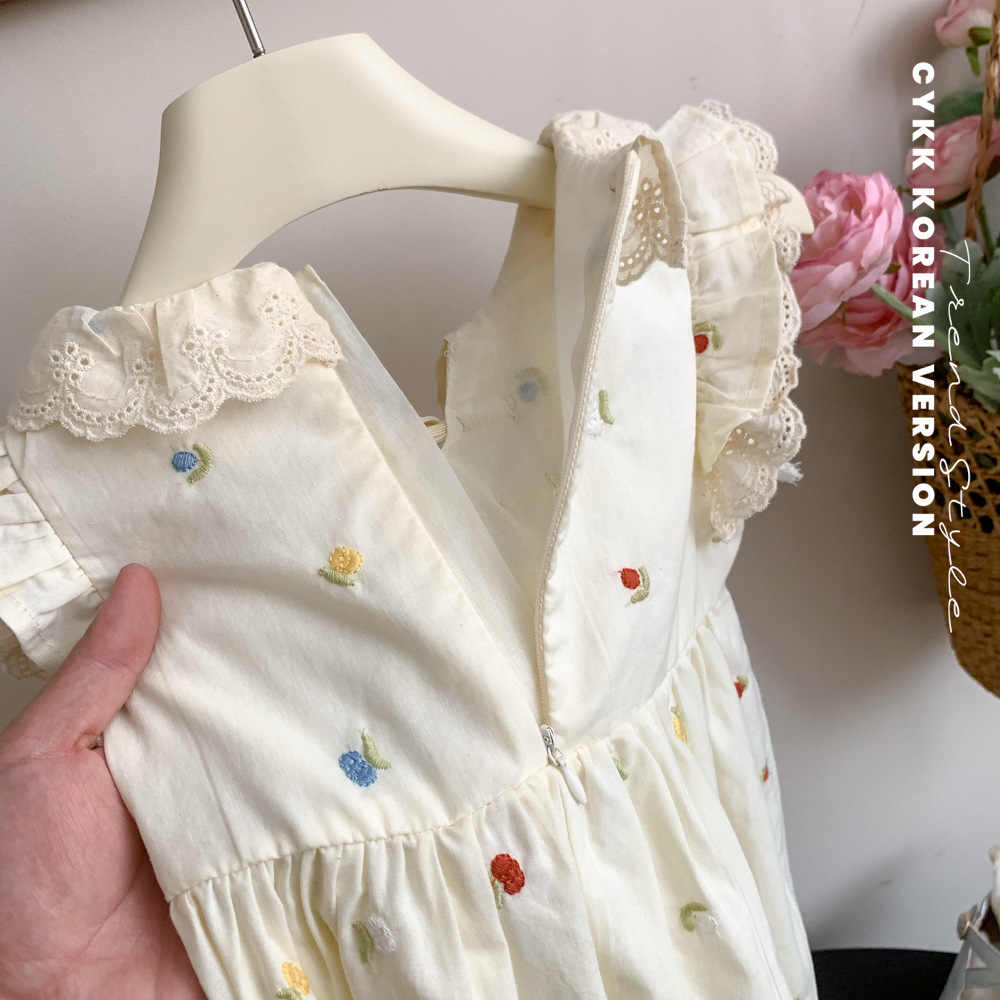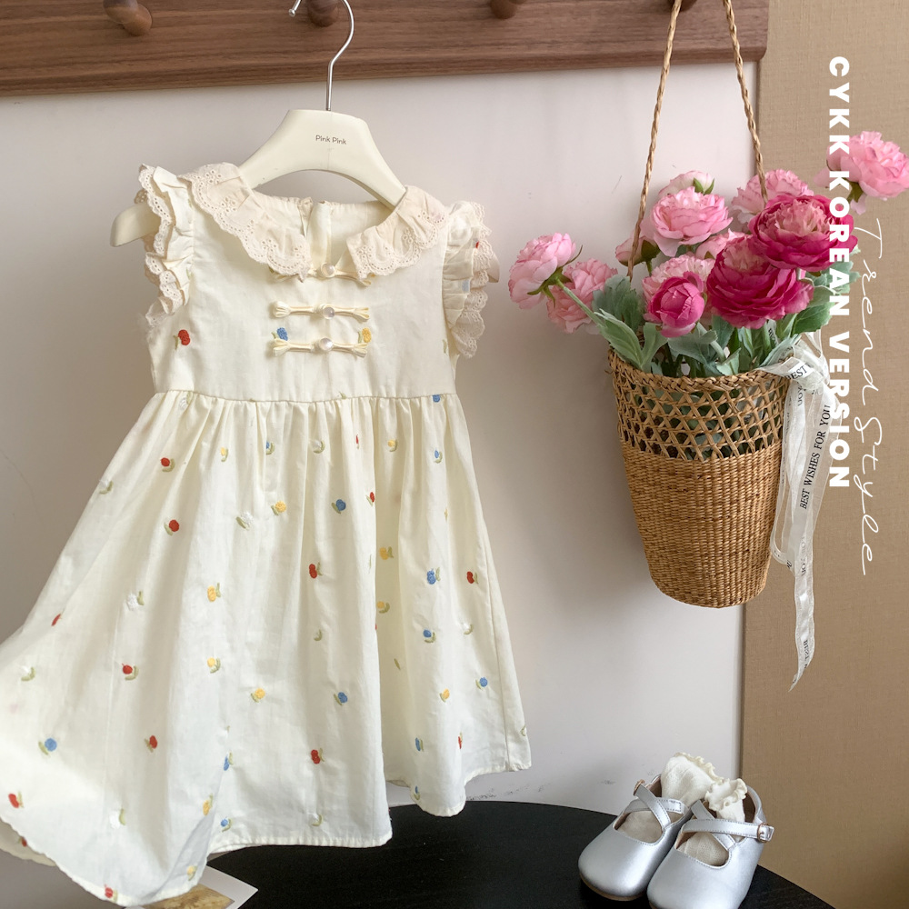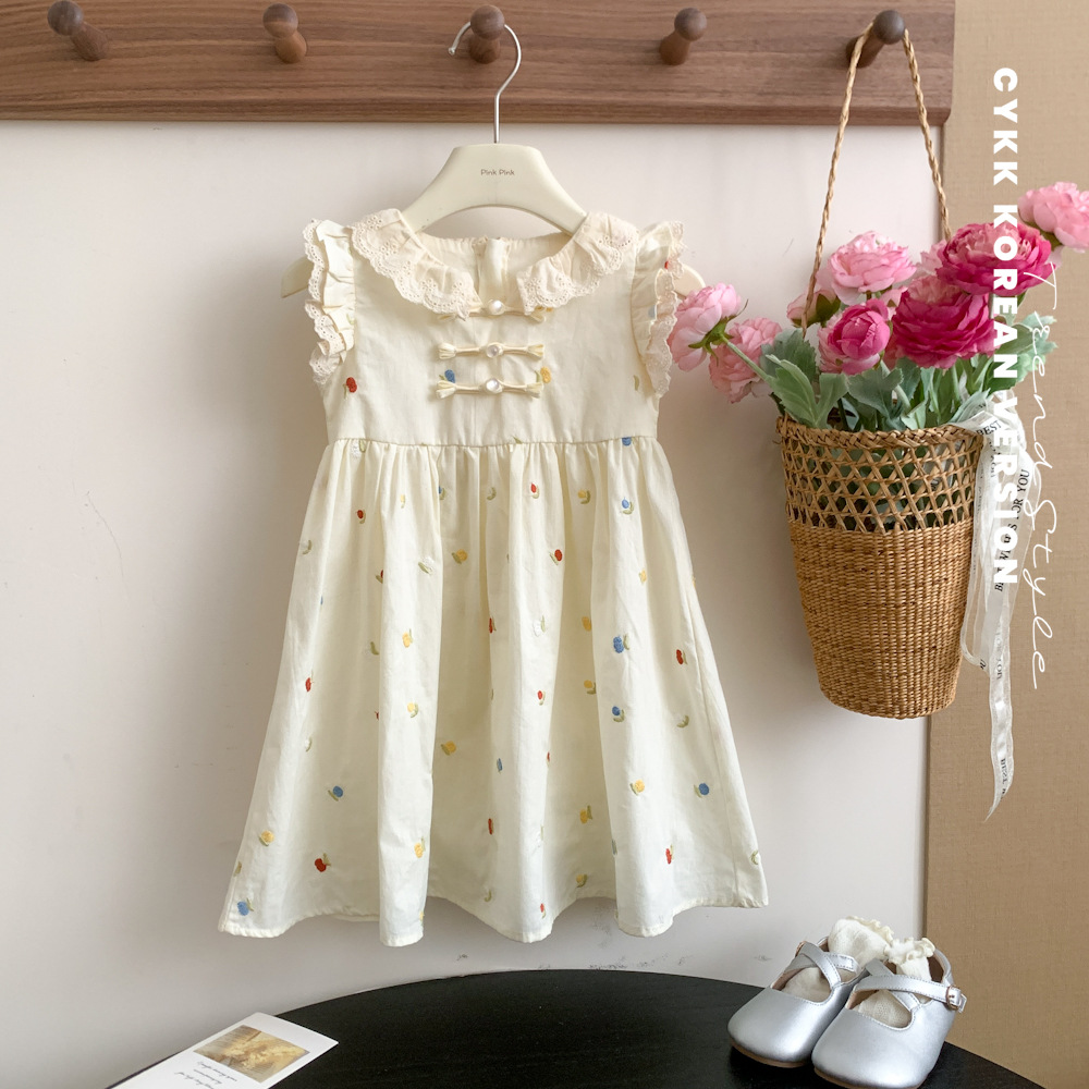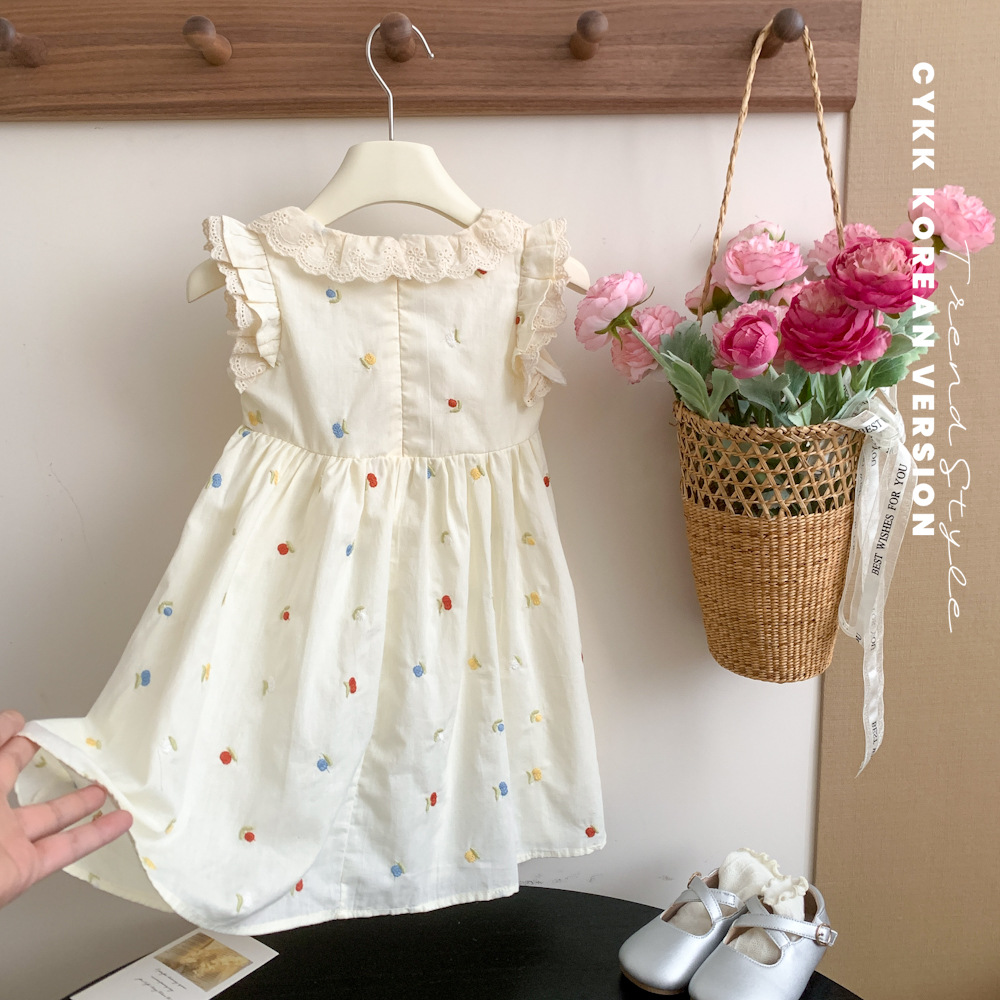 CYKK 한국 스타일 2024 여름 새 소녀의 레이스 레이스 플라잉 슬리브 무거운 자수 달콤한 조끼 트렌디 원피스스토어 가기
