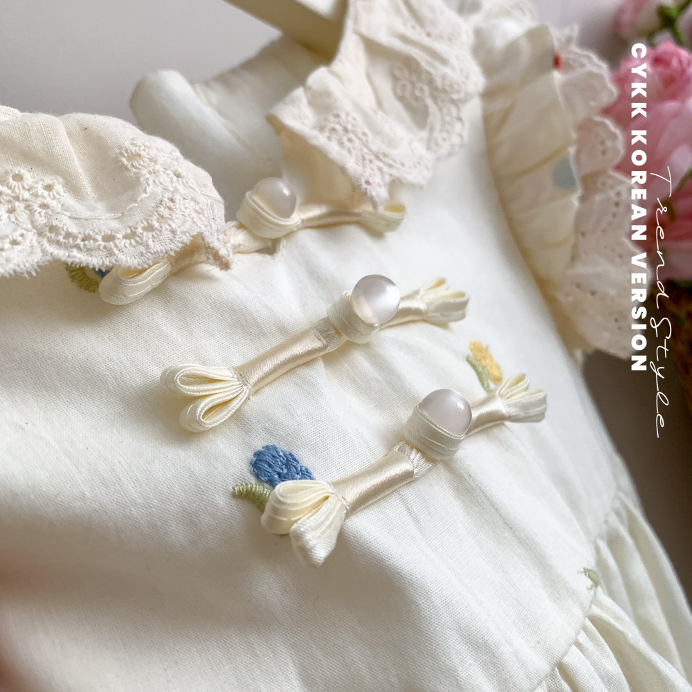 CYKK 한국 스타일 2024 여름 새 소녀의 레이스 레이스 플라잉 슬리브 무거운 자수 달콤한 조끼 트렌디 원피스
