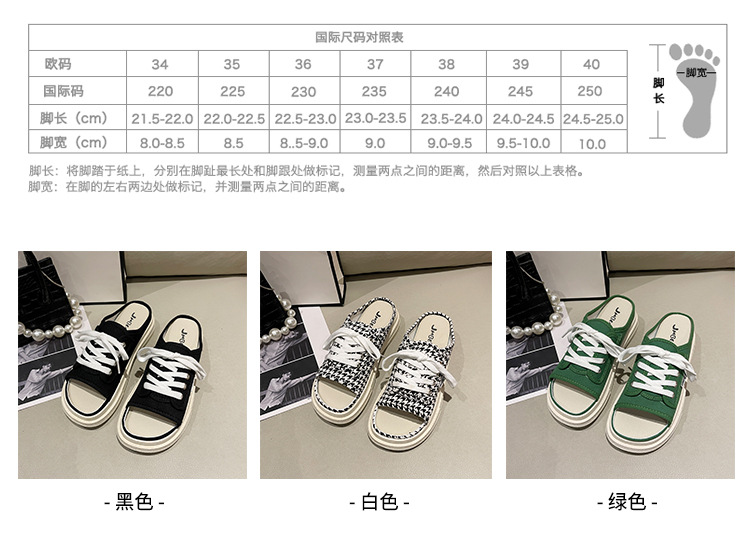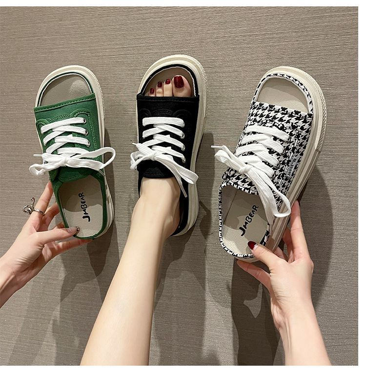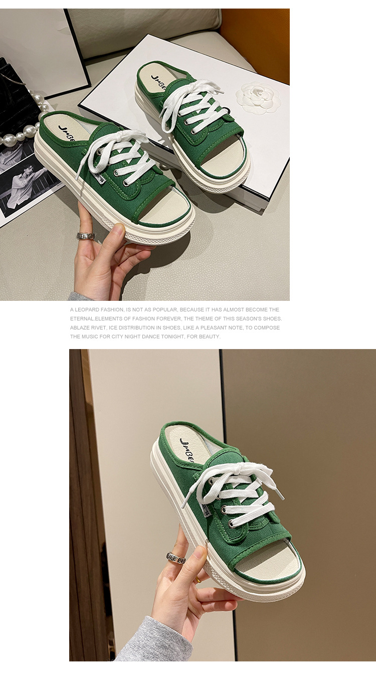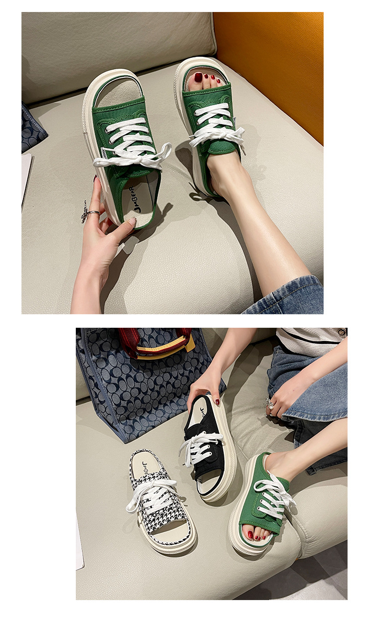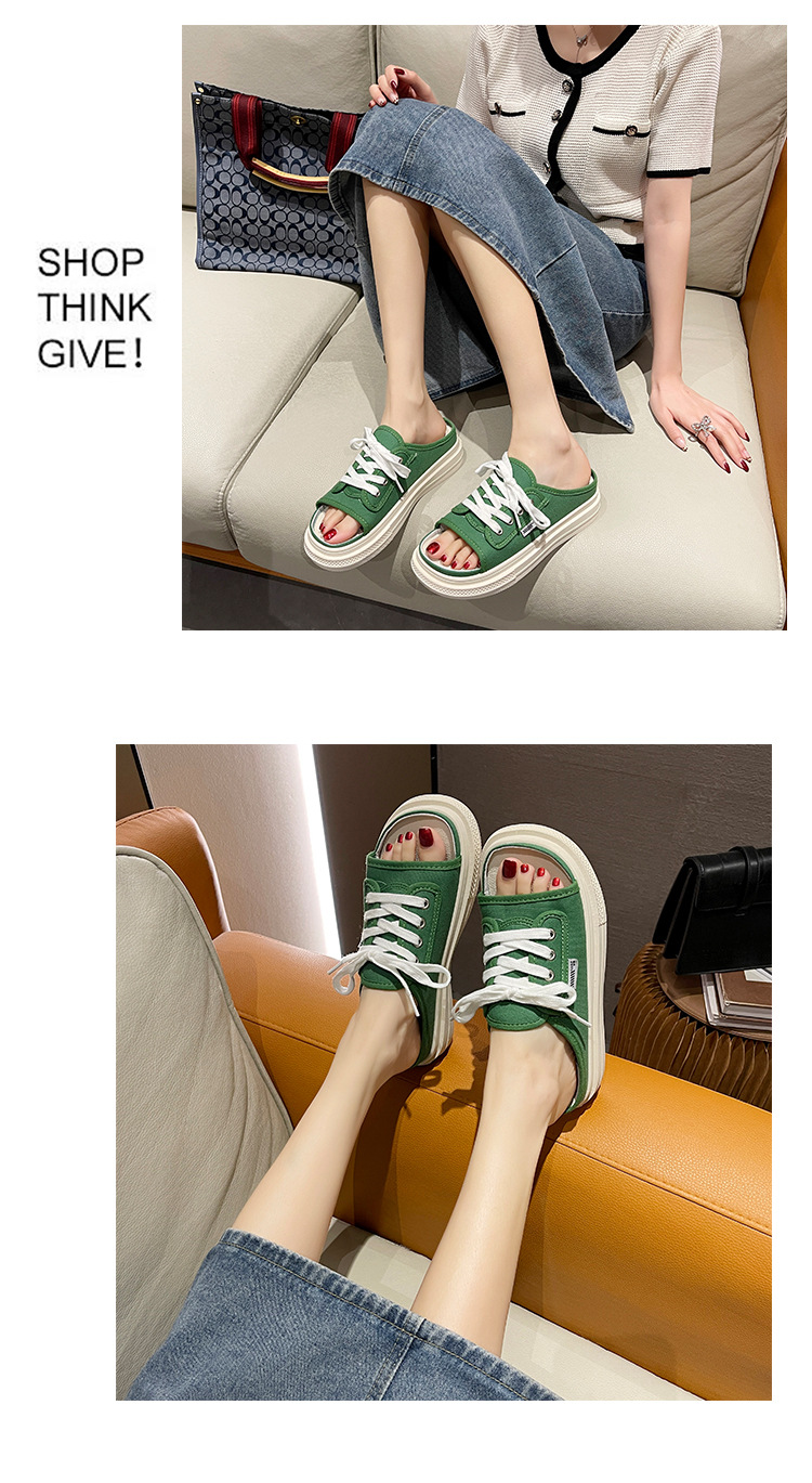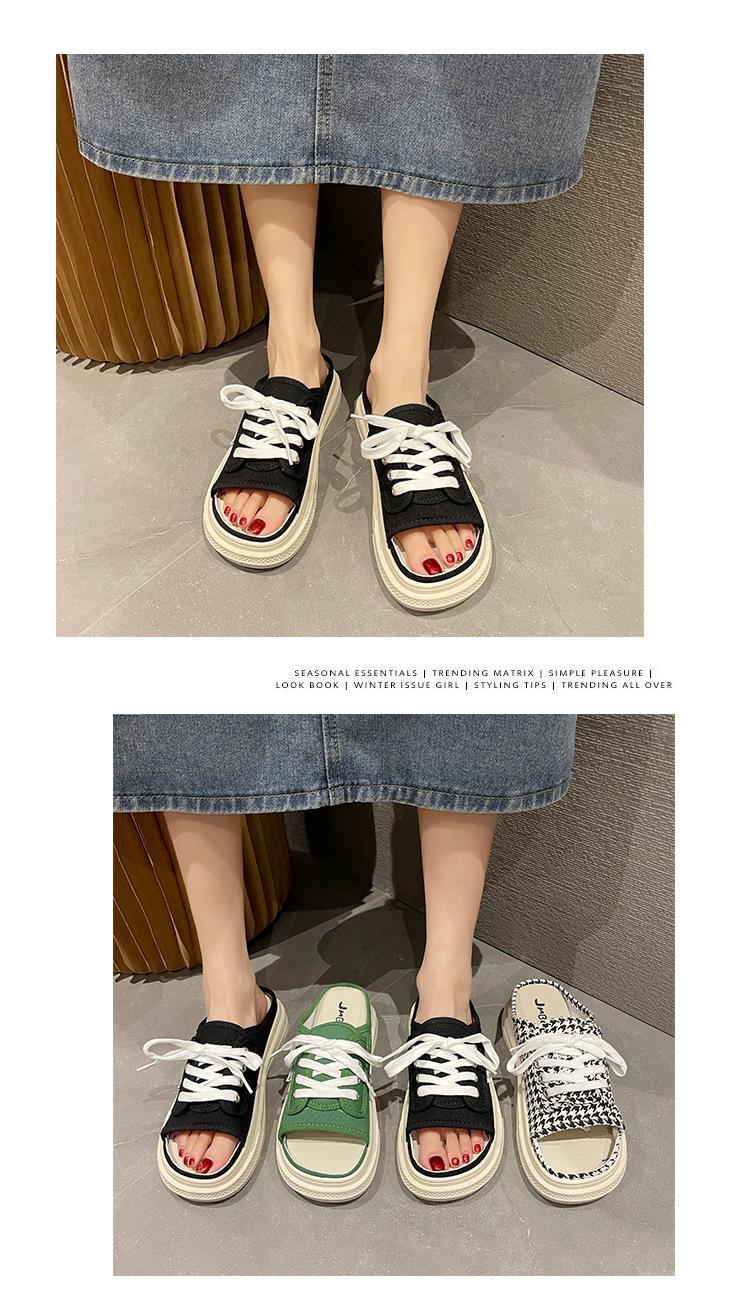 인터넷 연예인 캔버스 반 슬리퍼 여성 의상 Instagram 스타일 트렌디 2024 여름 새로운 도착 유행 올매치 원-두꺼운 슬라이드 샌들과 슬리퍼스토어 가기