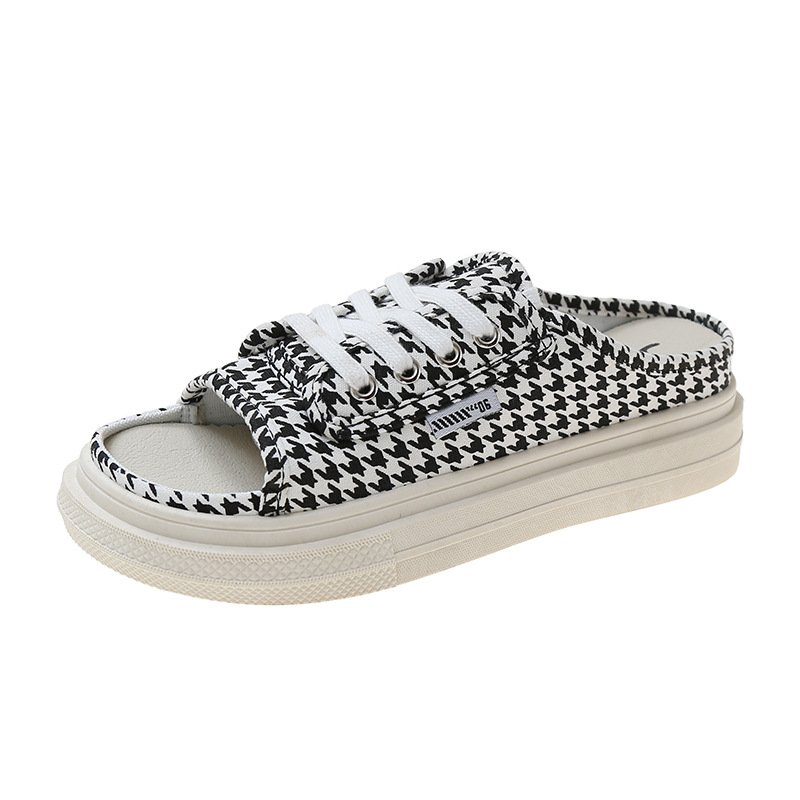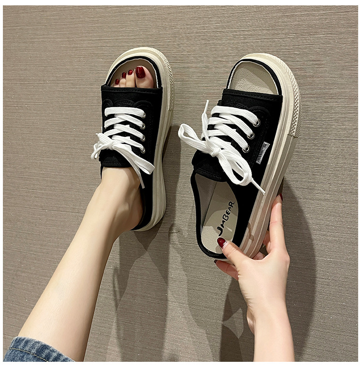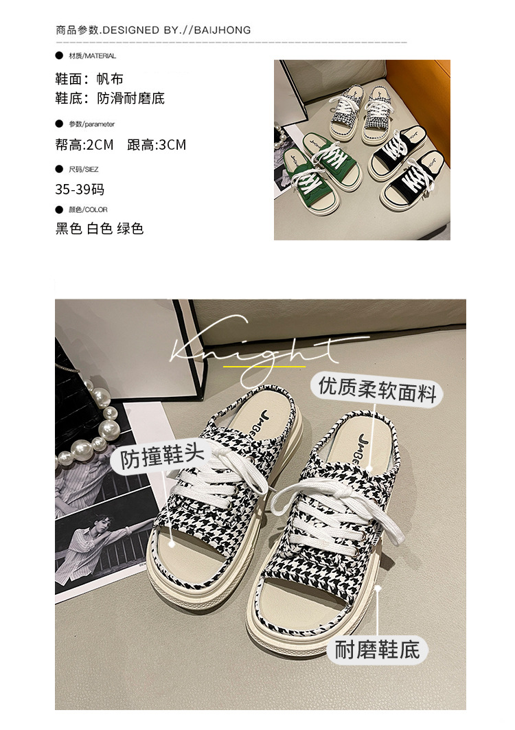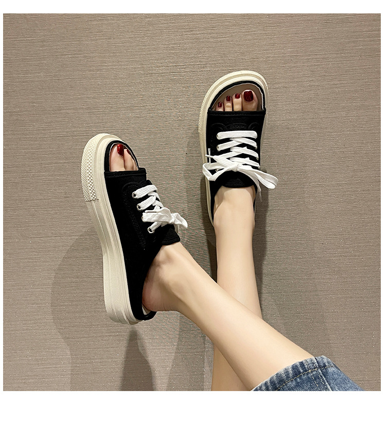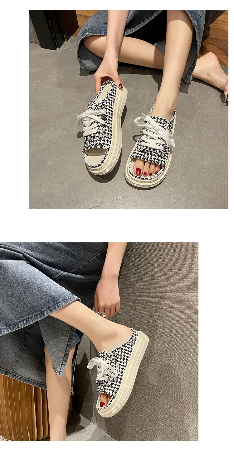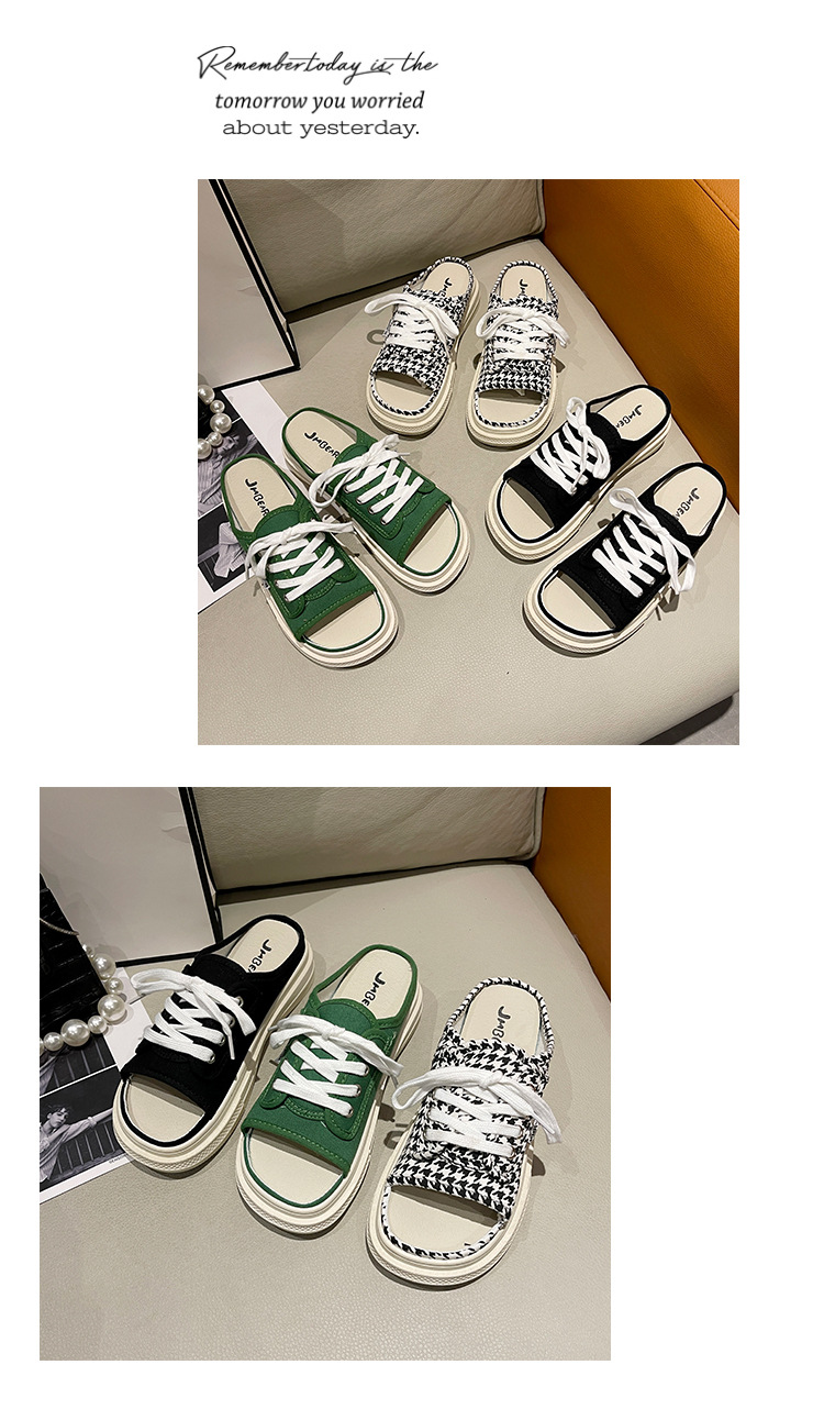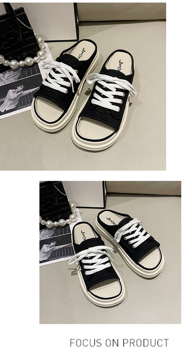인터넷 연예인 캔버스 반 슬리퍼 여성 의상 Instagram 스타일 트렌디 2024 여름 새로운 도착 유행 올매치 원-두꺼운 슬라이드 샌들과 슬리퍼스토어 가기