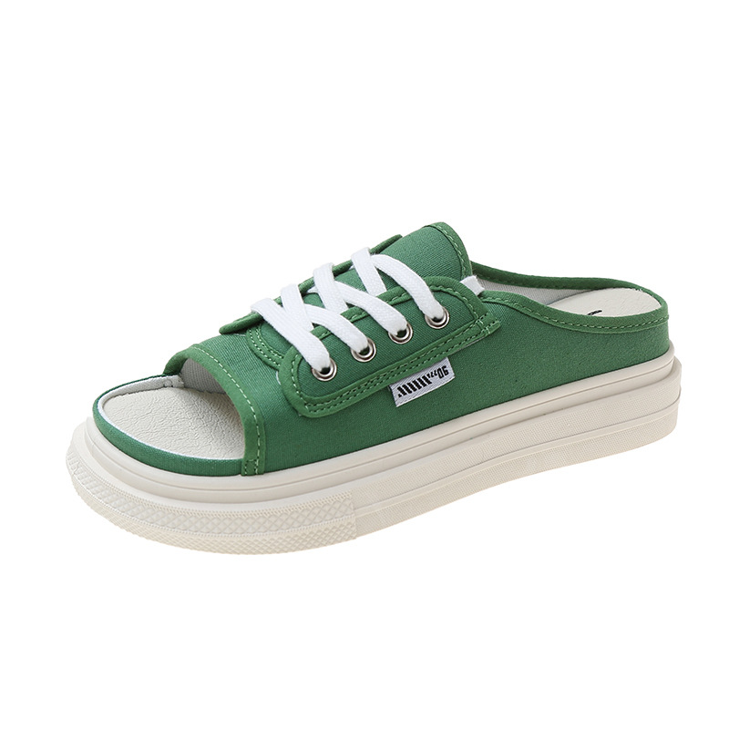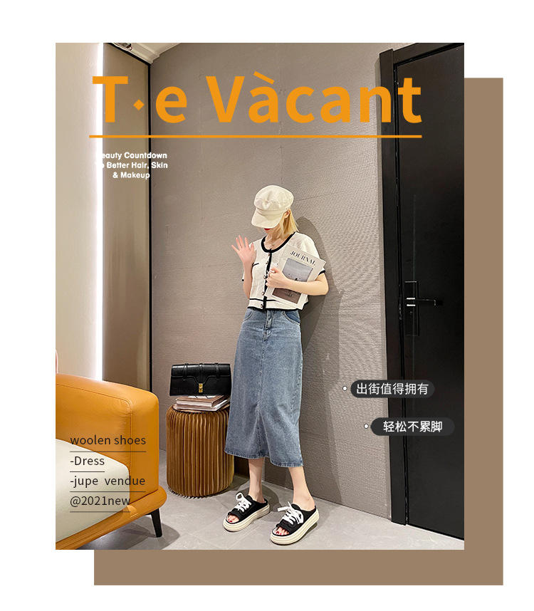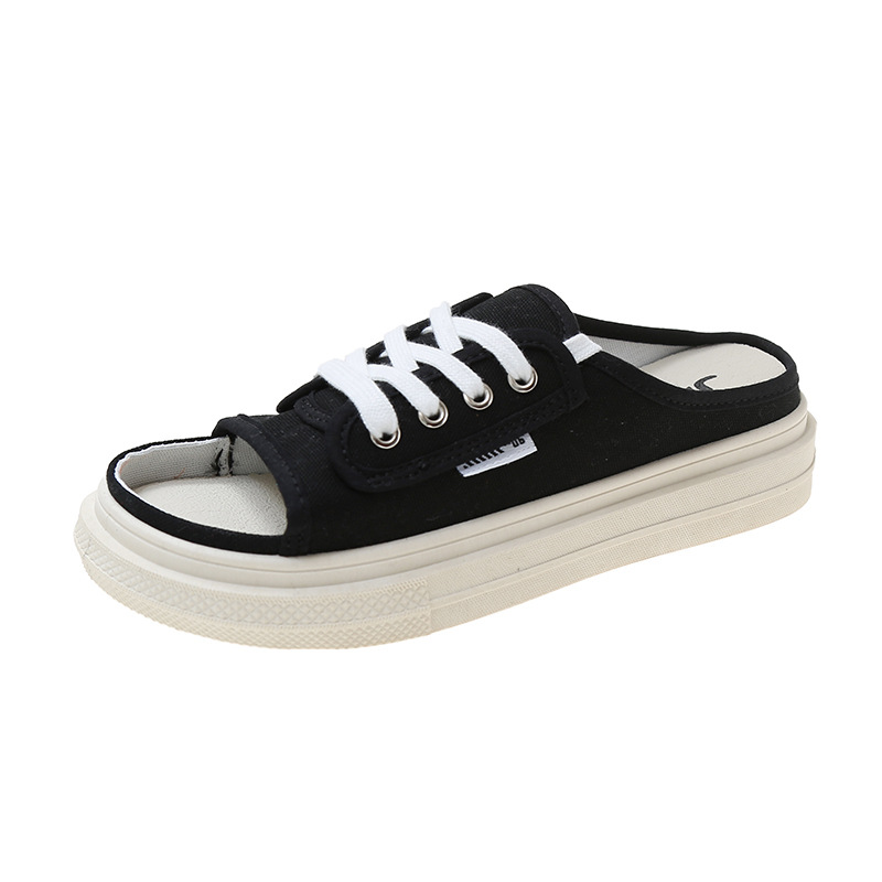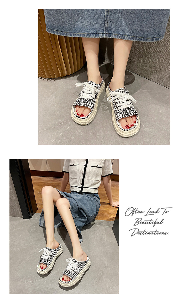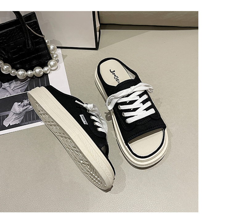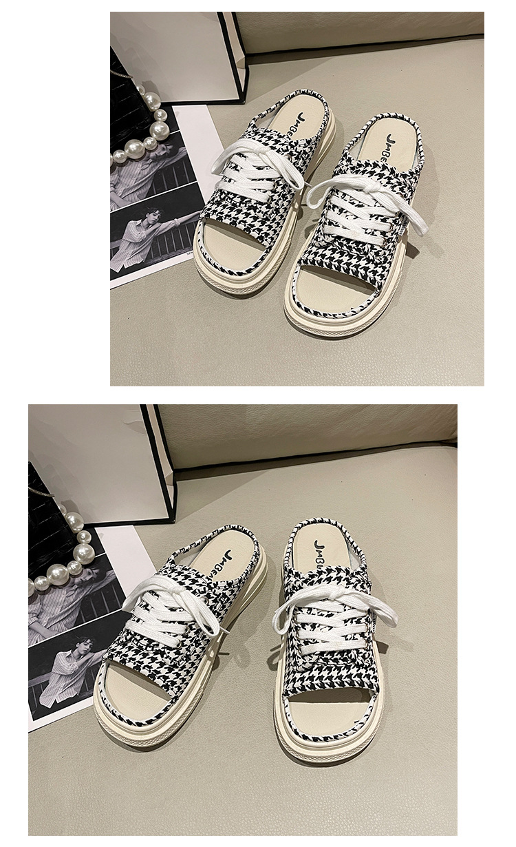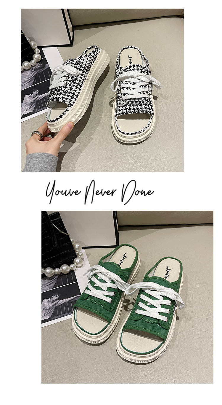 인터넷 연예인 캔버스 반 슬리퍼 여성 의상 Instagram 스타일 트렌디 2024 여름 새로운 도착 유행 올매치 원-두꺼운 슬라이드 샌들과 슬리퍼스토어 가기