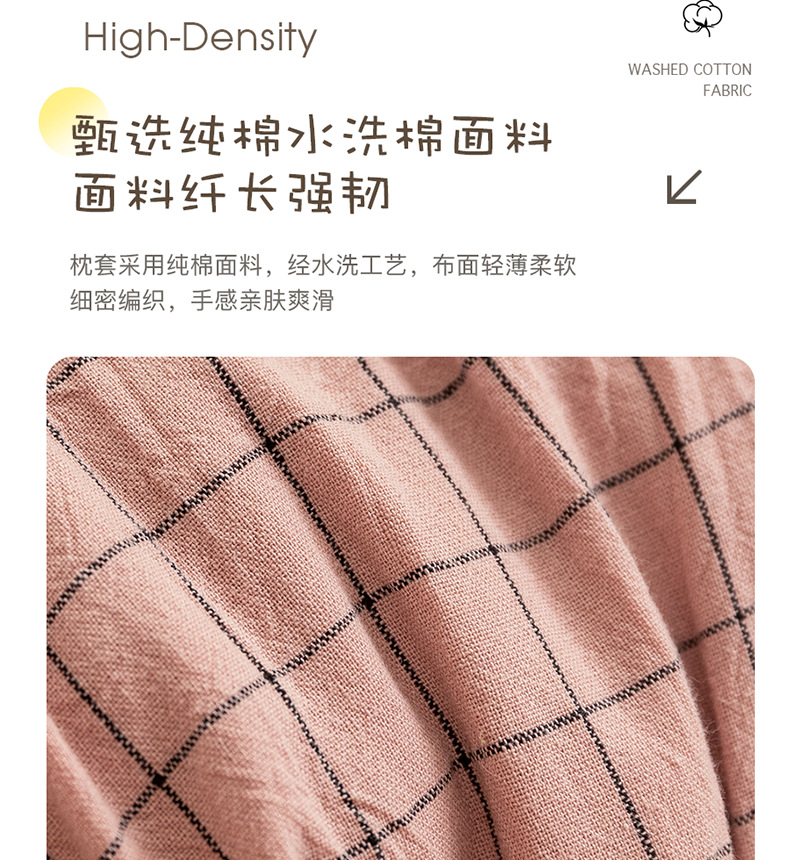 • 워시드 코튼 원단 노란색과 파란색 체크 무늬