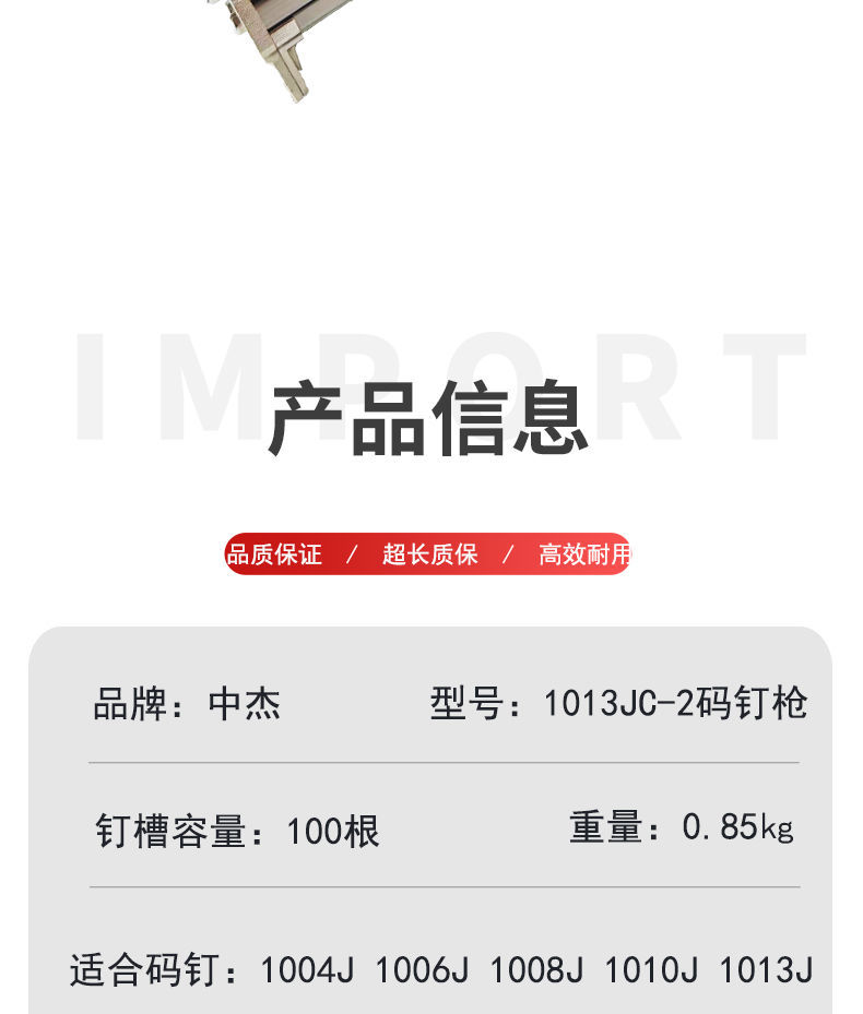 • Zhongjie 1013J 와이드 코드 네일건(조정 플레이트 제외) + 20m 기관 및 충돌 구성 포함