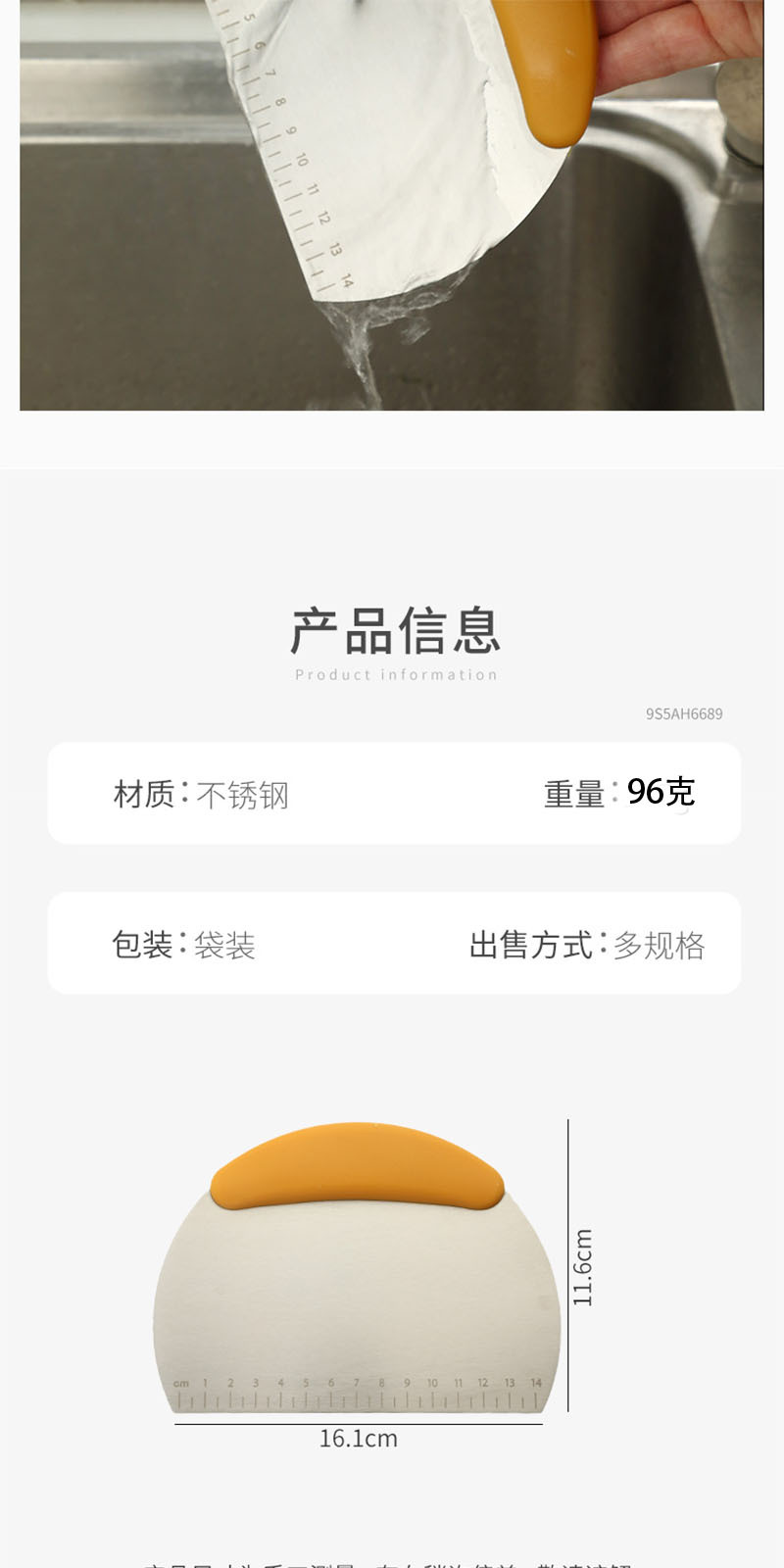스테인리스 반죽 커터 밀가루 눈금 표시가 있는 쌀국수 스크레이퍼 430 반원형 반죽 커터 베이킹 스크레이퍼 해외 인기 상품