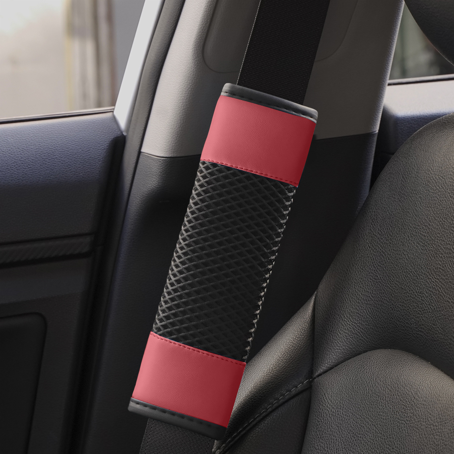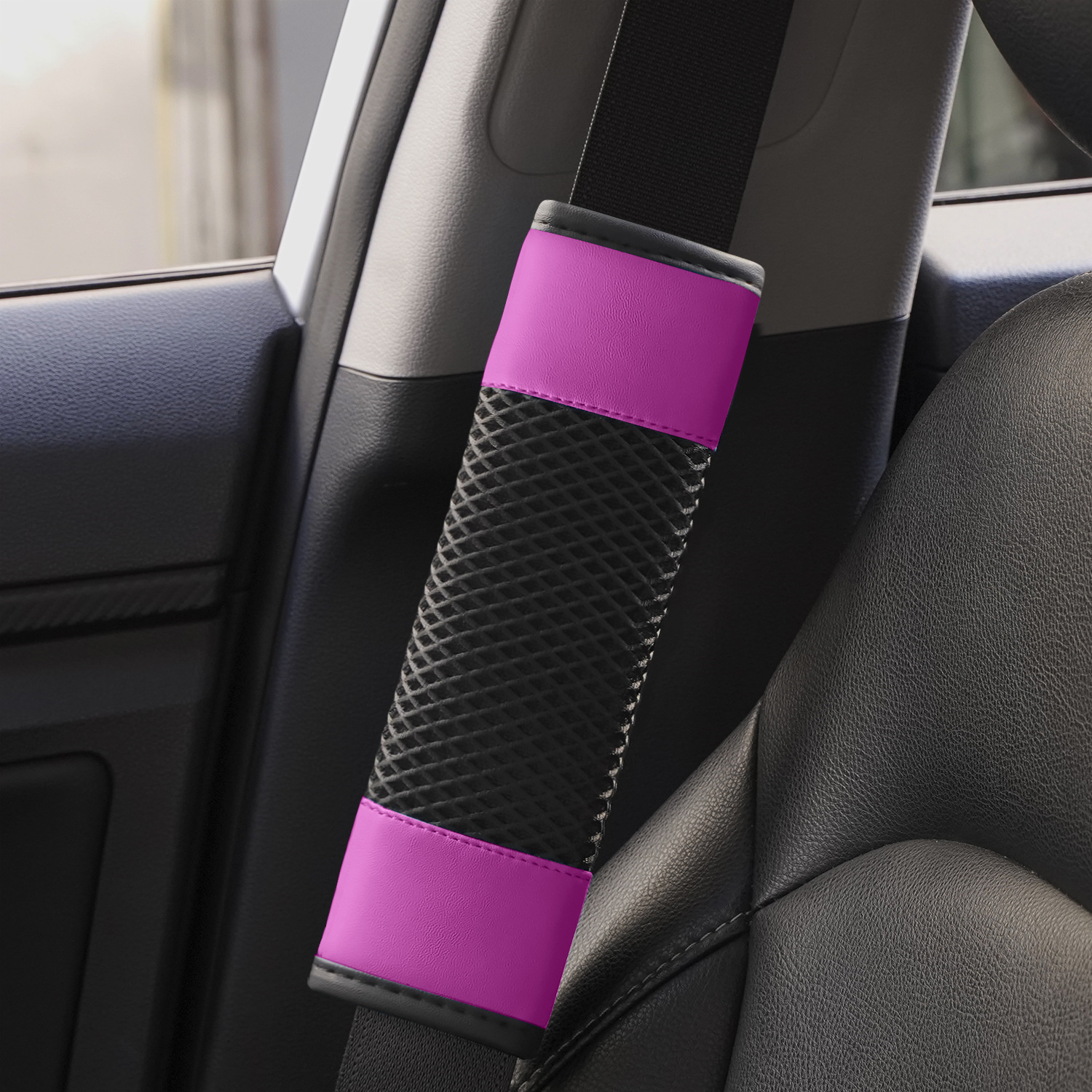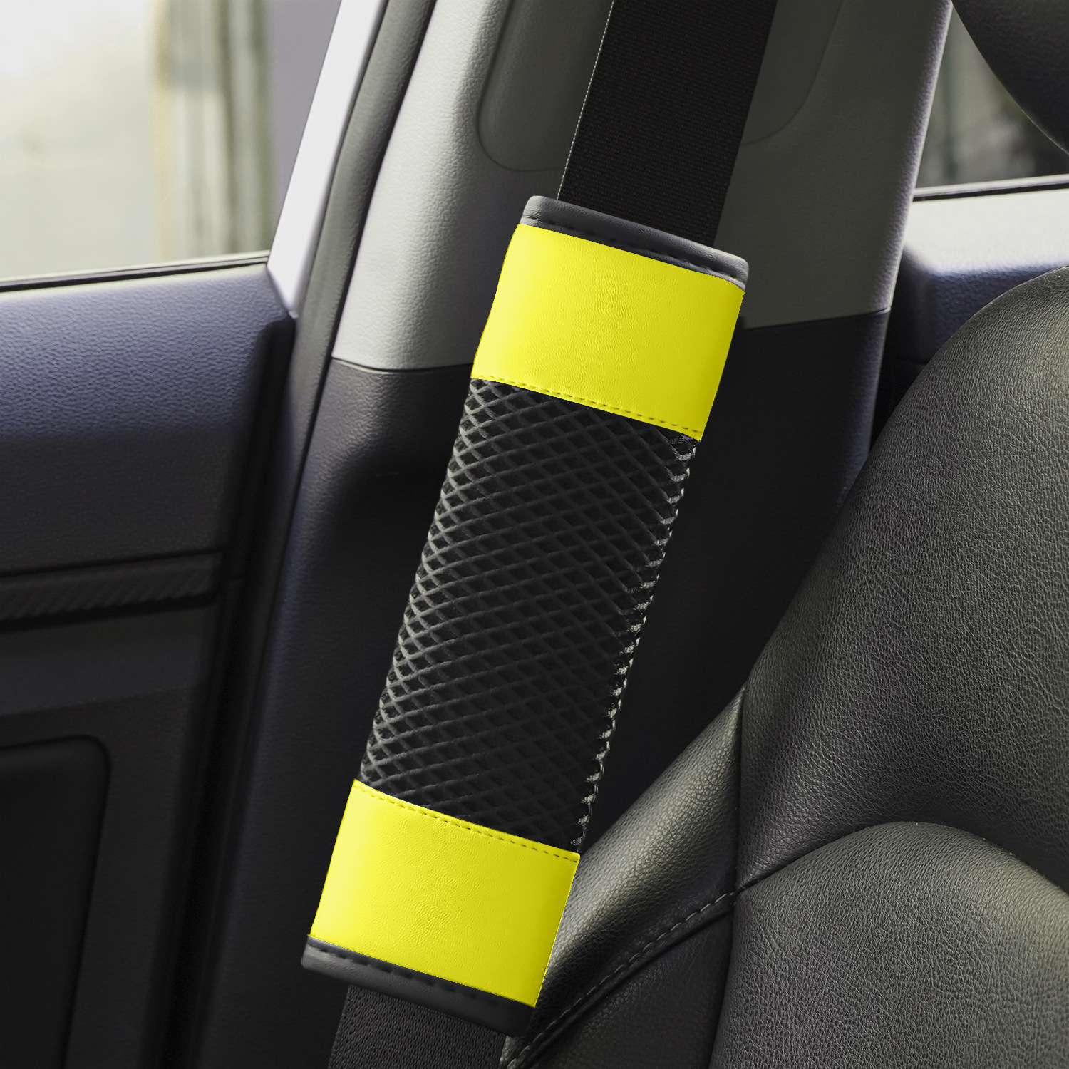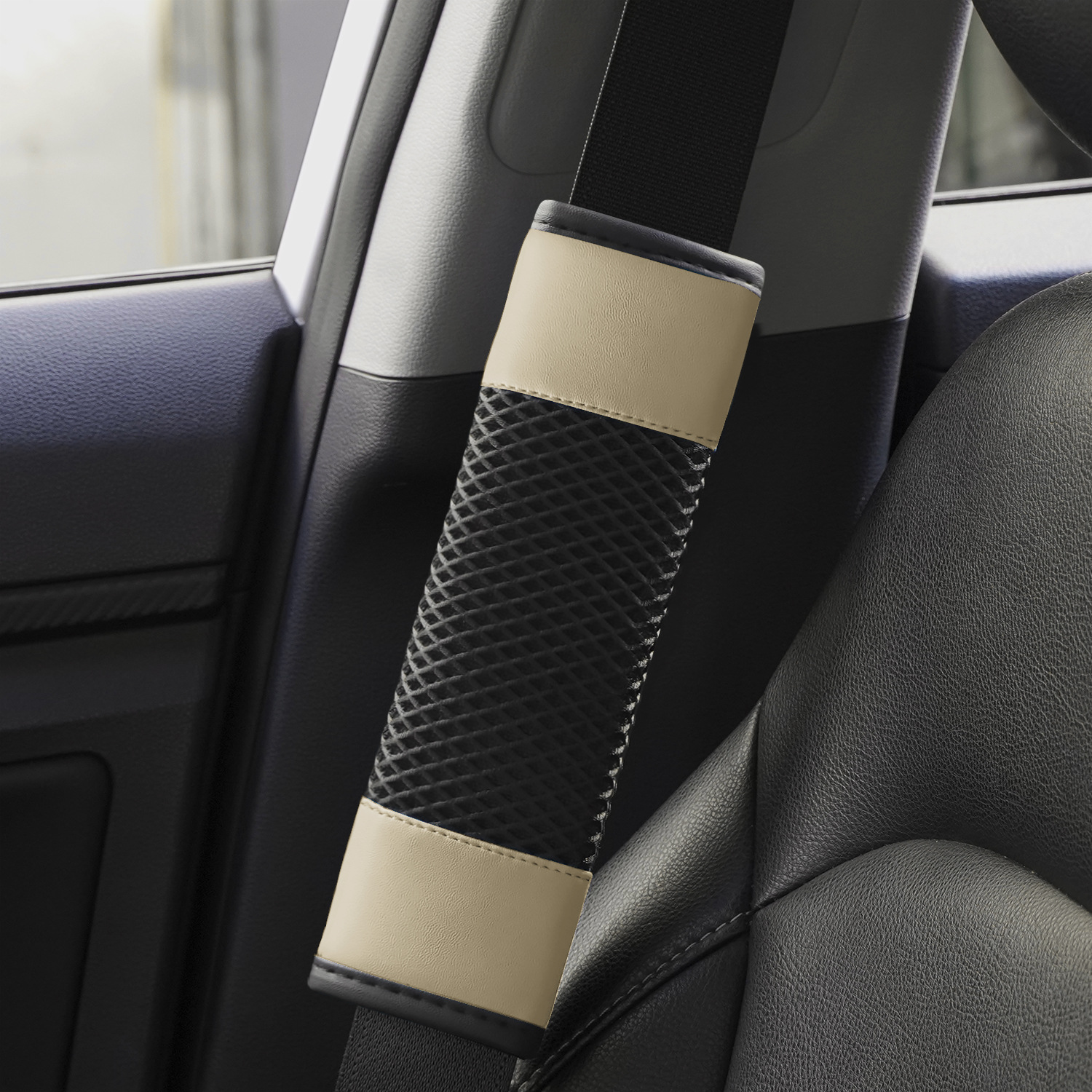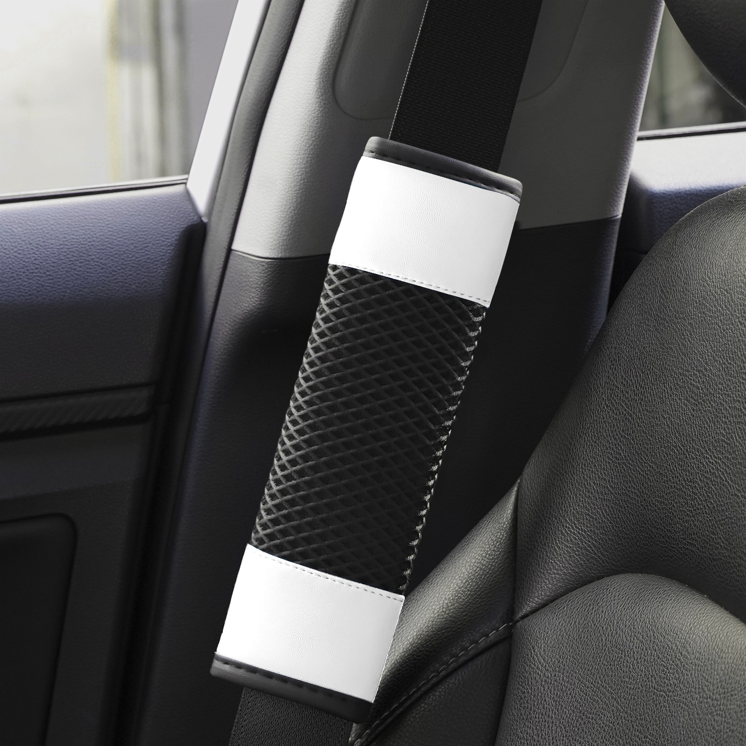 국경 간 신차 시트 벨트 어깨 커버 화이트 메쉬 편안하고 통기성 유니버설 시트 벨트 보호 커버