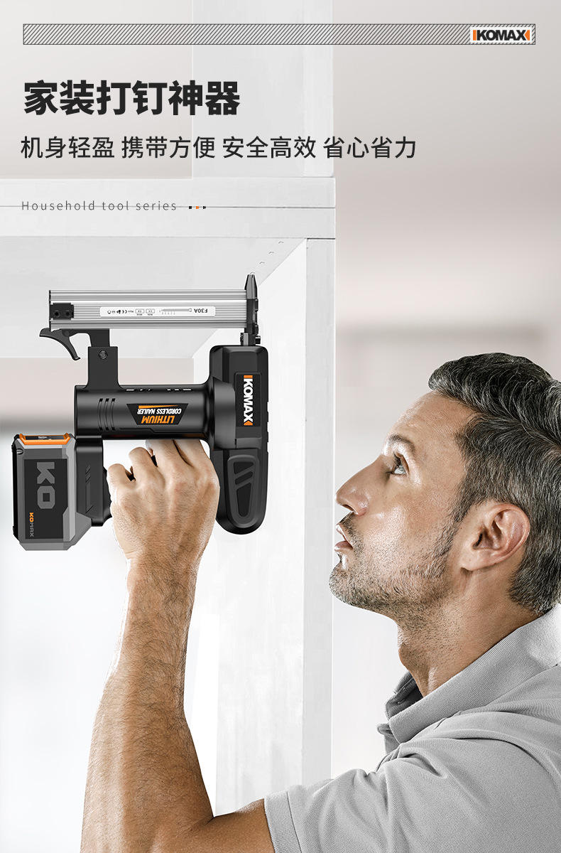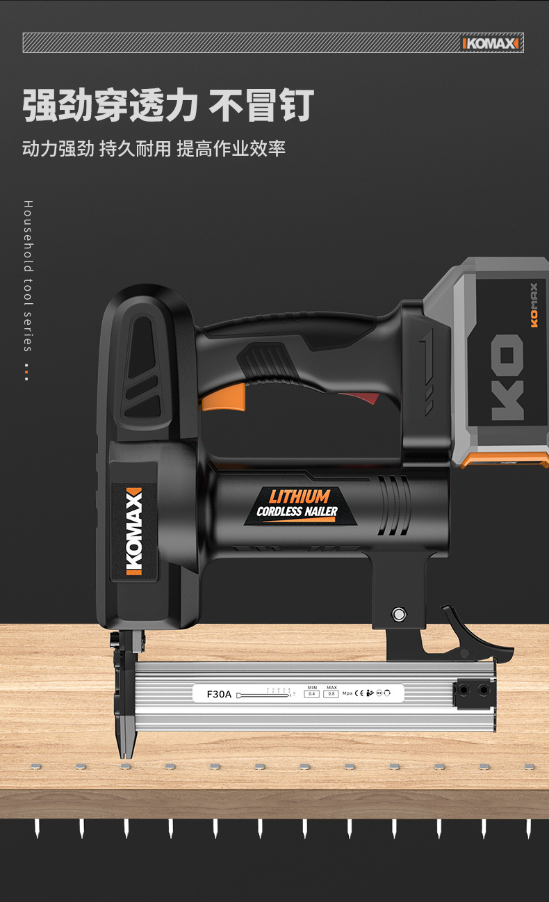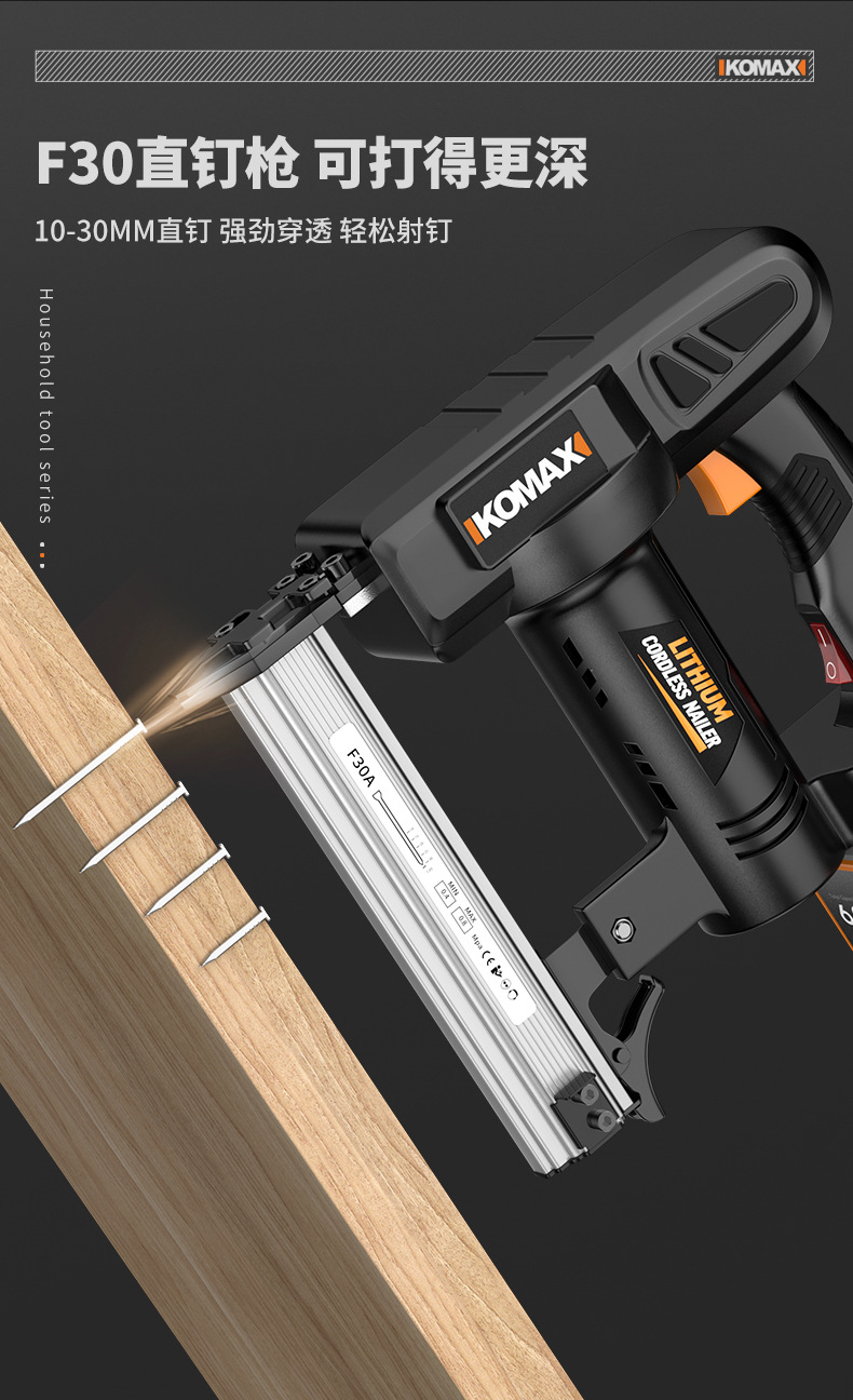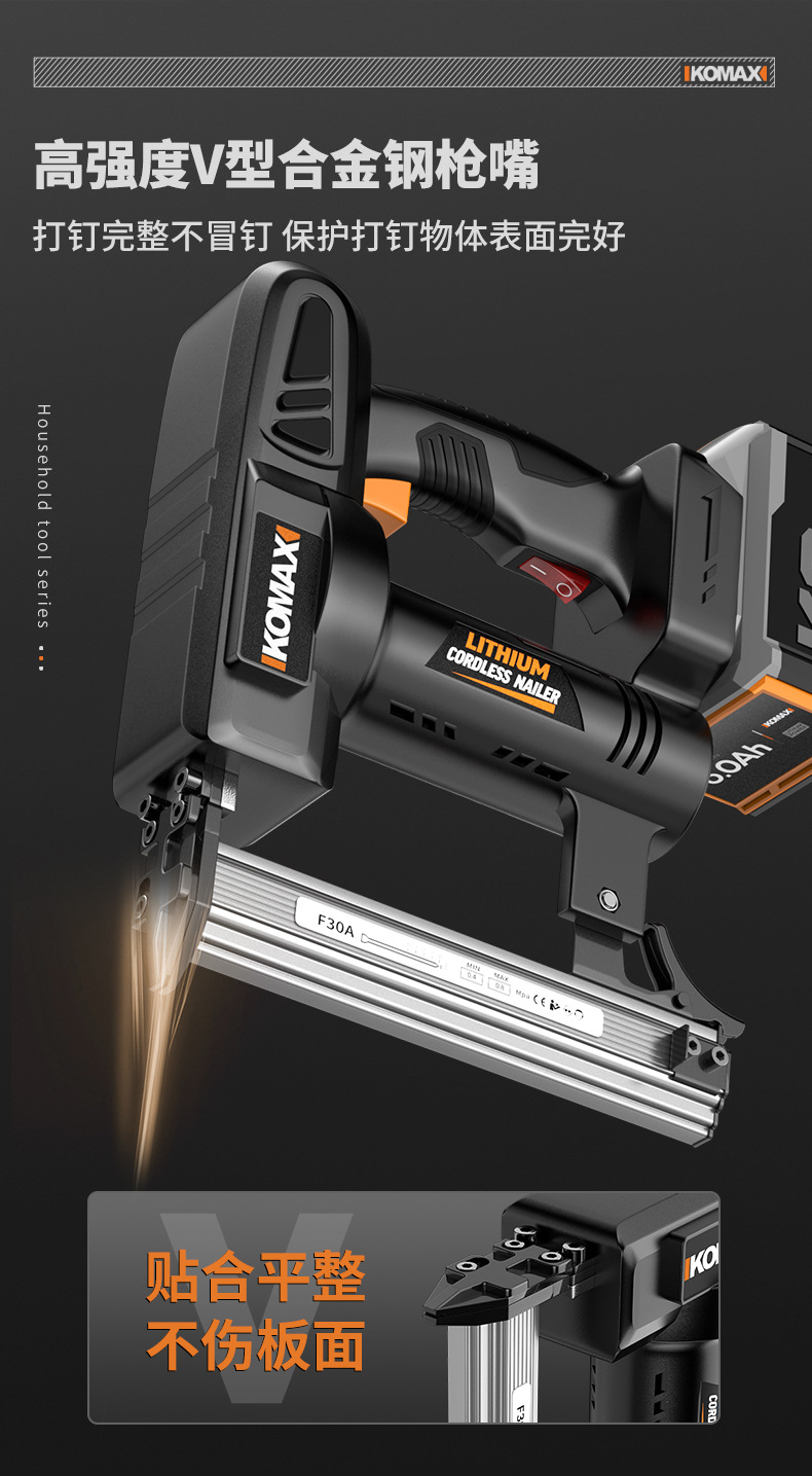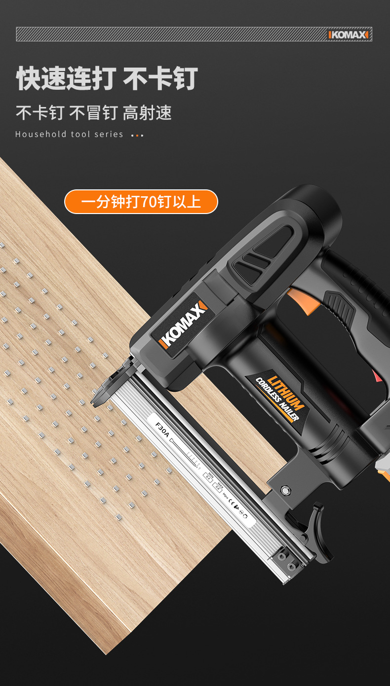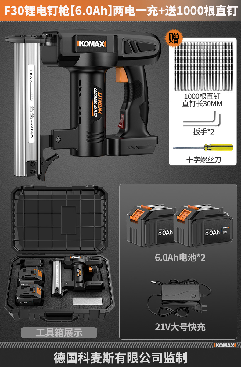 • F30 리튬 배터리 네일건 [6.0Ah 전자 디스플레이] 배터리 2개 및 충전기 1개 + 무료 직선 못 1000개