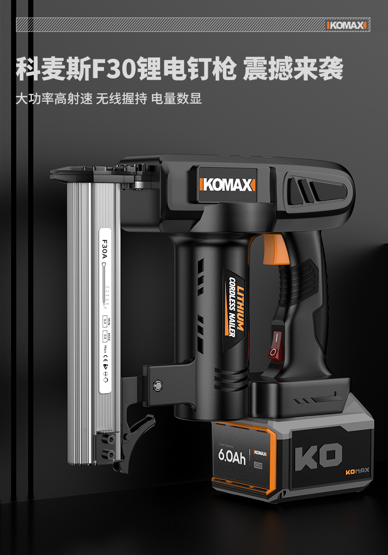 • F30 리튬 배터리 네일건 [6.0Ah 전자 디스플레이] 배터리 1개, 충전 1개 + 무료 직선 못 1000개