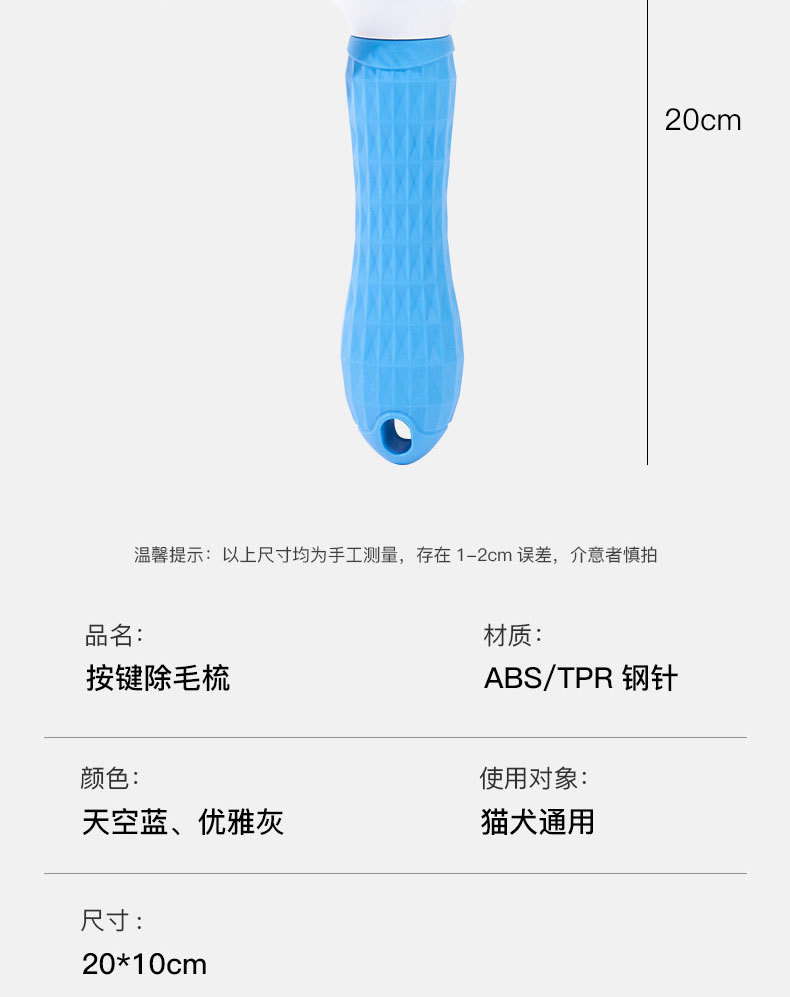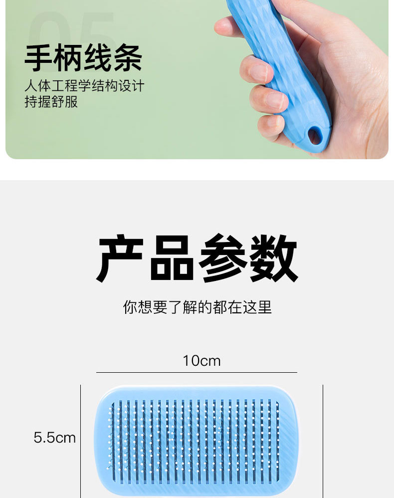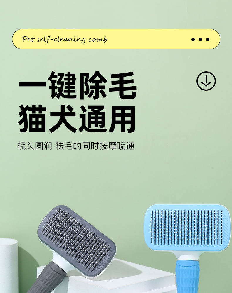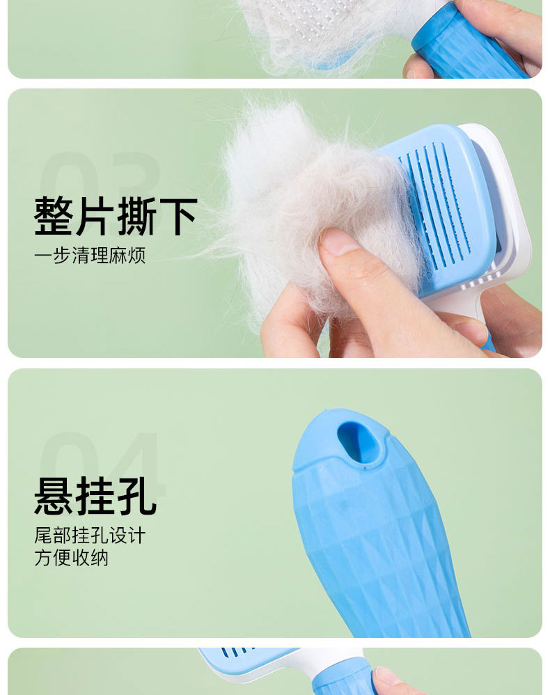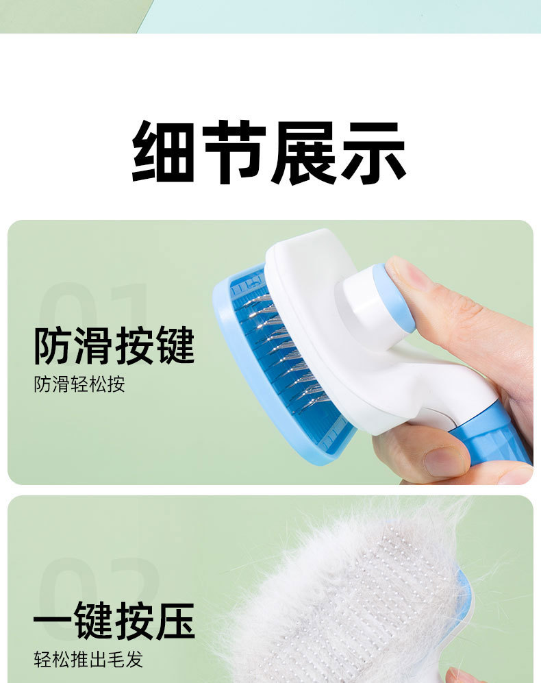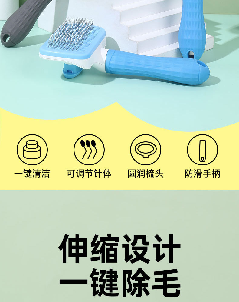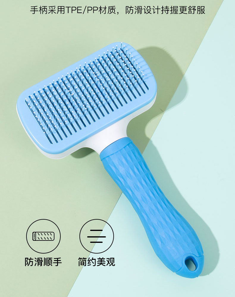 원피스 프레스 고무 손잡이 애완 동물 빗 얇은 바늘 두꺼운 바늘 개 자동 제모 국경 애완 동물 제품 마사지 빗
