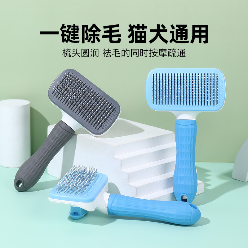 원피스 프레스 고무 손잡이 애완 동물 빗 얇은 바늘 두꺼운 바늘 개 자동 제모 국경 애완 동물 제품 마사지 빗스토어 가기