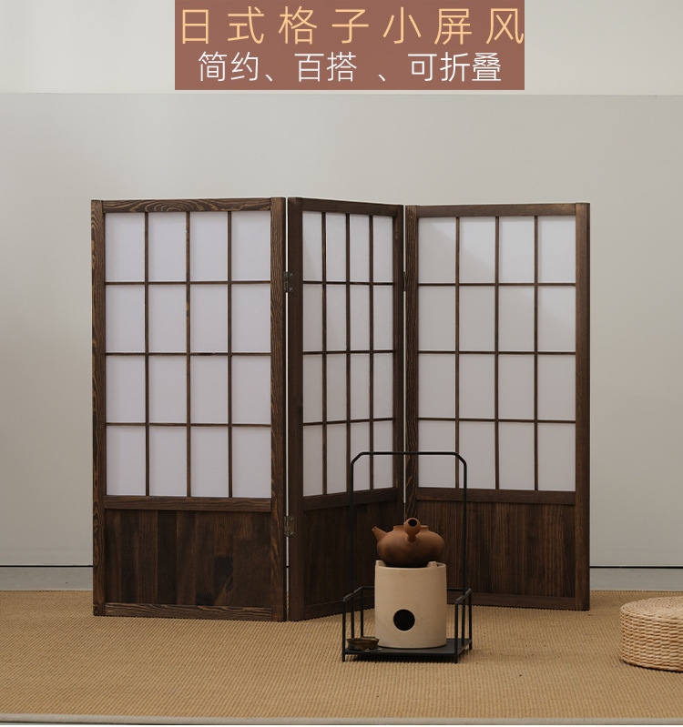 일본식 스크린 파티션 거실 문 버클 새로운 중국식 홀 사무실 다실 간단한 단단한 나무 격자 무늬 접이식 화면스토어 가기