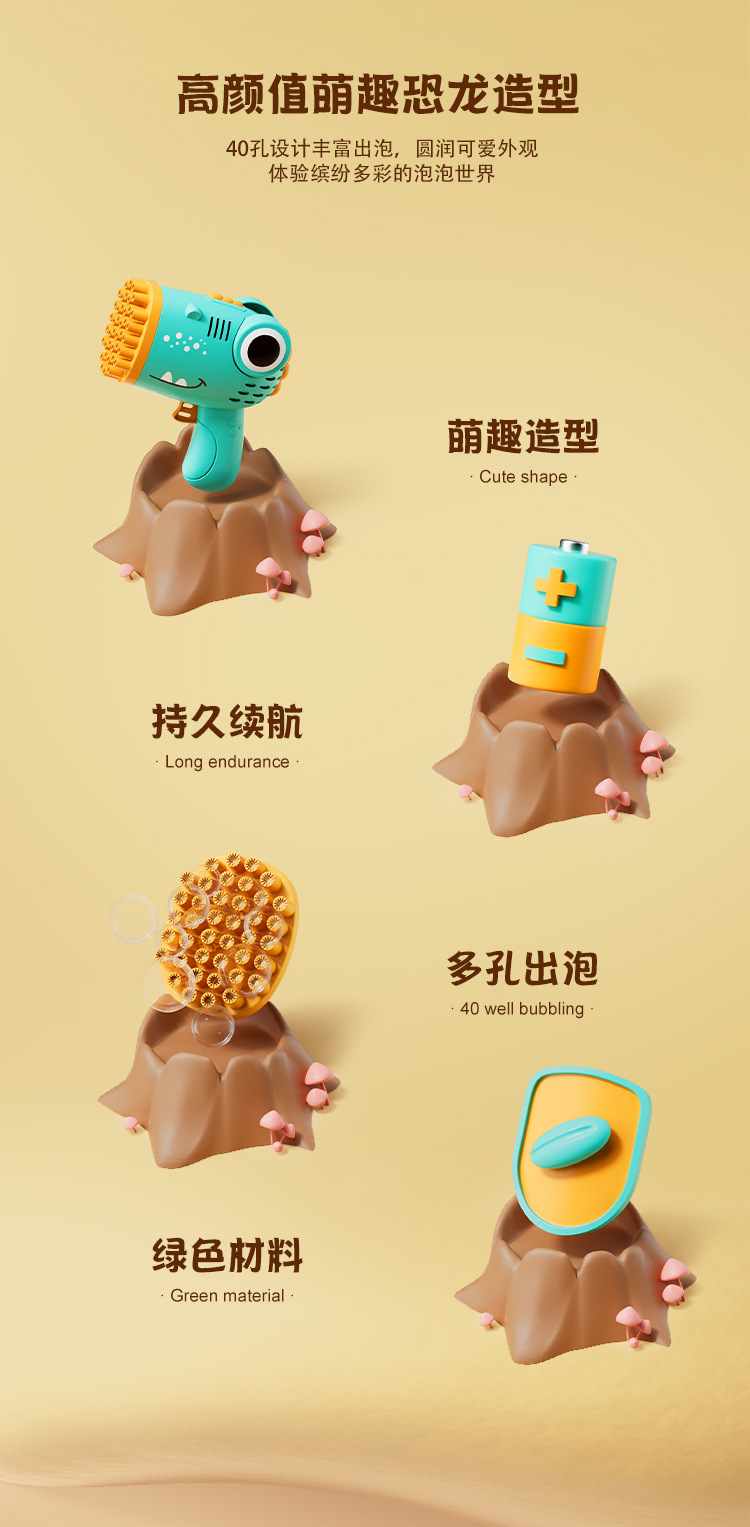 국경 40 홀 어린이 완전 자동 공룡 거품 기계 장난감 게이트 링 다공성 거품 총 실속 야시장