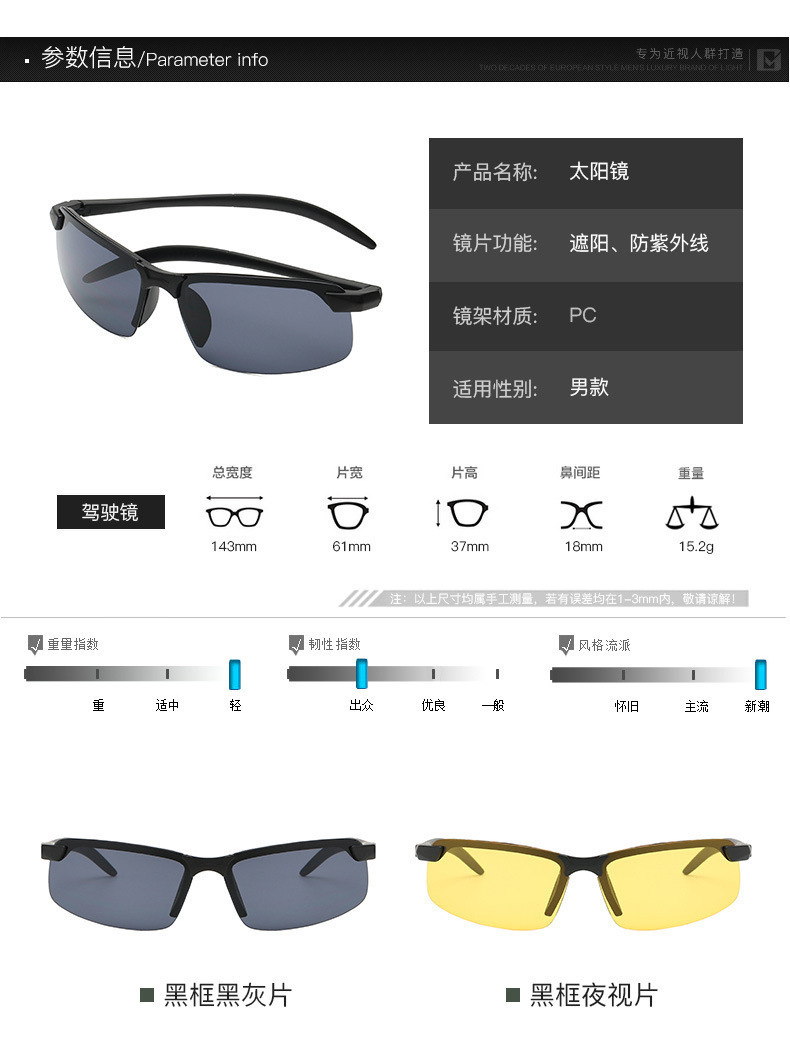 새로운 변하지 않는 선글라스 3043 남성 주야간 이중 사용 운전 낚시 야간 투시경 선글라스 제조 업체 도매