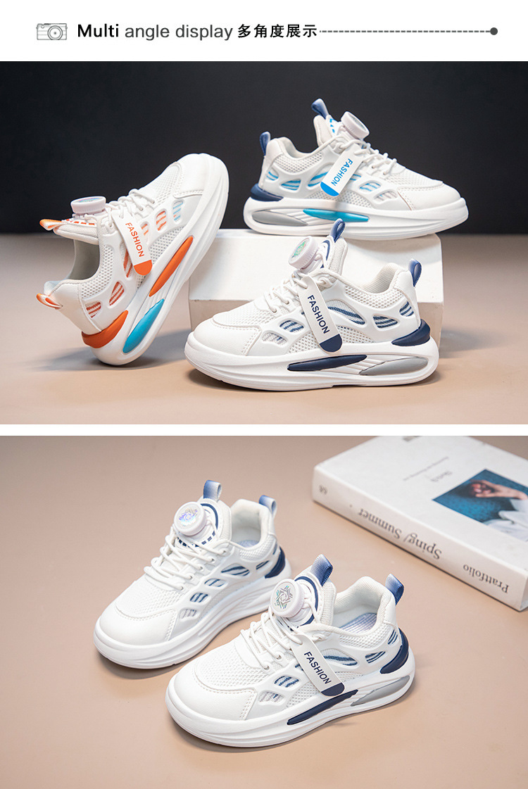 2024 봄과 가을 새로운 어린이 운동화 소년 소프트 솔 보드 신발 큰 어린이 회전 버클 캐주얼 신발 화이트 신발스토어 가기