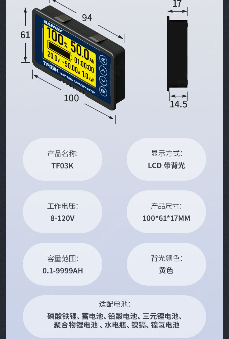 # # TF03KH 고정밀 배터리 레벨 모니터 배터리 모니터
