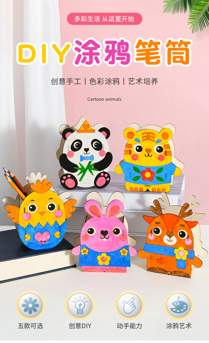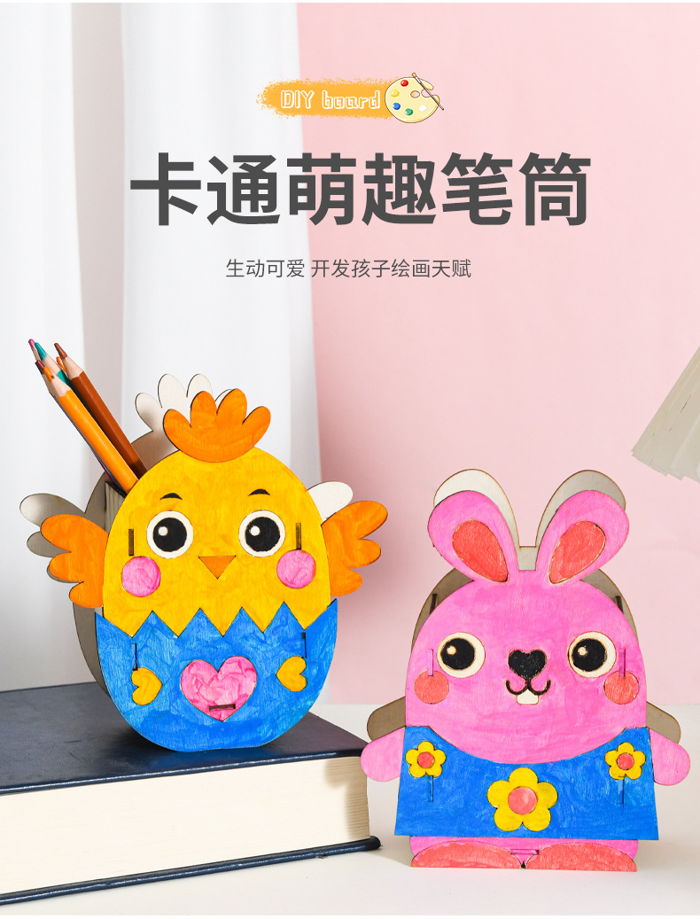 흰색 나무 펜 홀더 DIY 유치원 색칠 창조적 인 예술 재료 어린이 낙서 그림 그림 펜 홀더