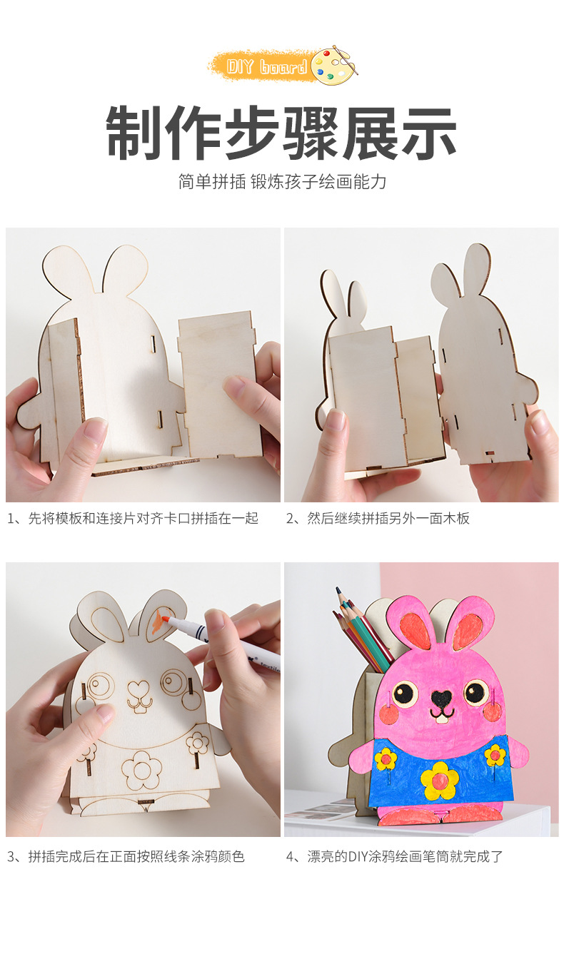 흰색 나무 펜 홀더 DIY 유치원 색칠 창조적 인 예술 재료 어린이 낙서 그림 그림 펜 홀더스토어 가기
