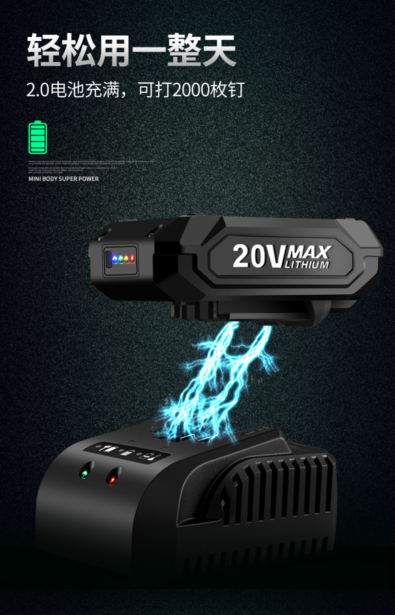• 리튬 배터리 무선 네일건 2.0Ah 보조 배터리