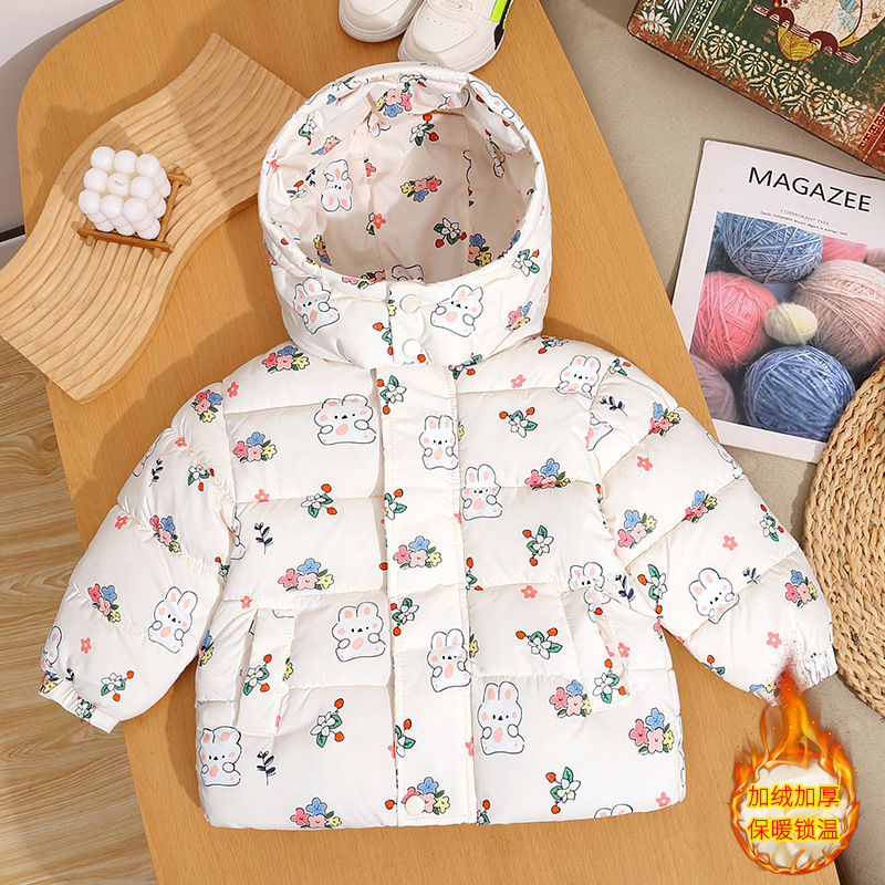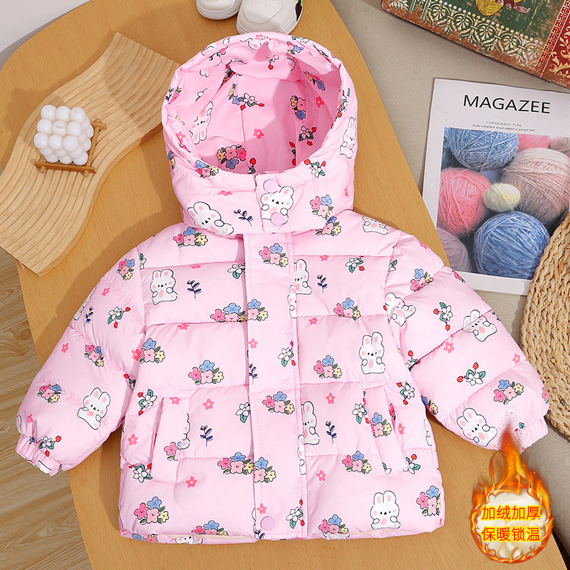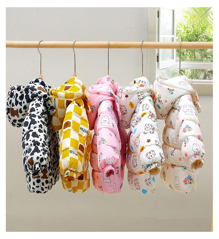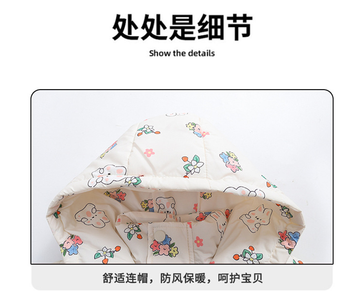 새로운 아동면 패딩 재킷 꽃 무늬 천 패션 귀여운 중소 어린이 베이비 코트 코트 기모 두껍게 된 아동면 패딩 옷스토어 가기