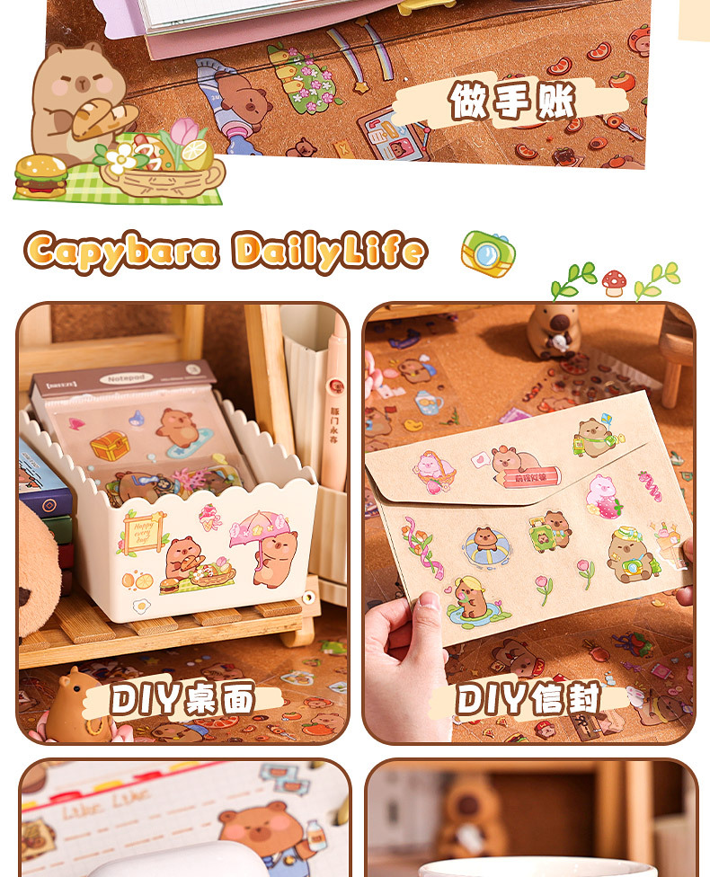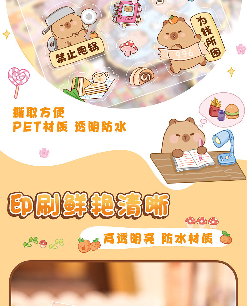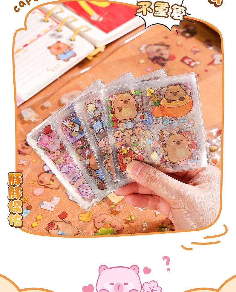 카바 곰 손 계정 스티커 소녀 어린이 손 계정 스티커 투명한 스티커 장난감 100 만화 지팡이 붙여 넣기