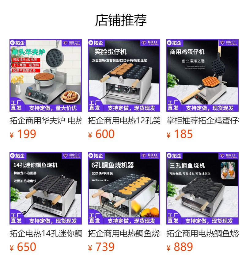 Tuoqi 상업용 110V 바나나 불타는 기계 5 홀 바나나 와플 장비 전기 난방 220V 플립 그물 레드 와플 기계