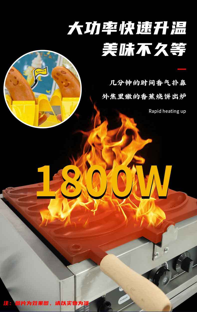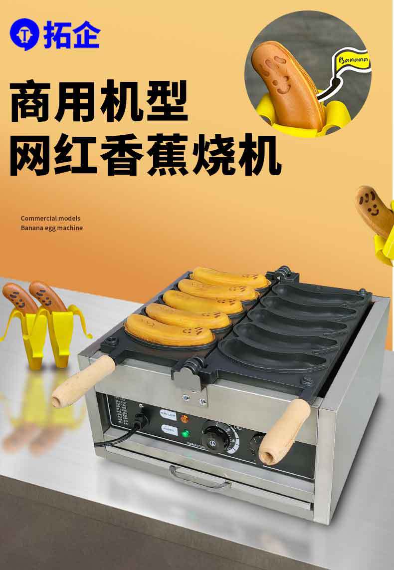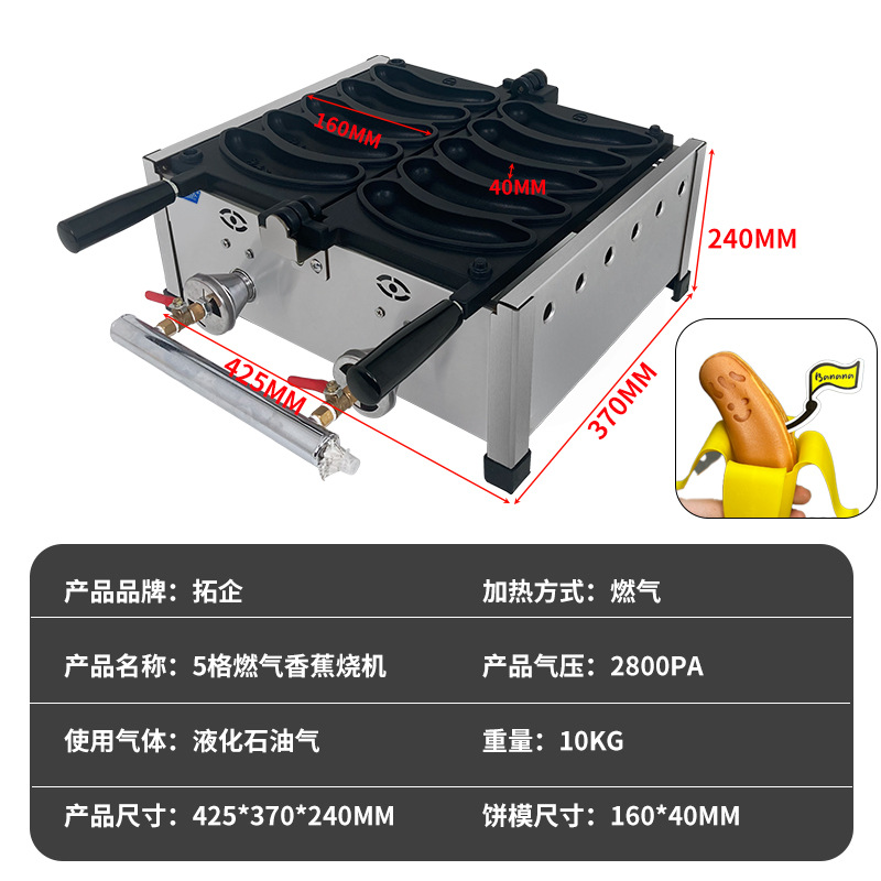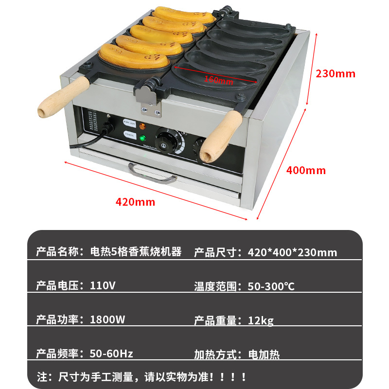 Tuoqi 상업용 110V 바나나 불타는 기계 5 홀 바나나 와플 장비 전기 난방 220V 플립 그물 레드 와플 기계스토어 가기