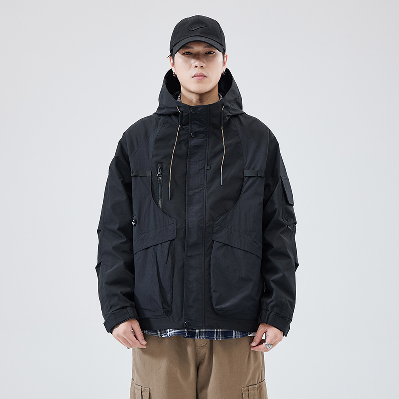 E980E2户外山系防风防水机能冲锋衣男款潮牌美式宽松登山工装外套