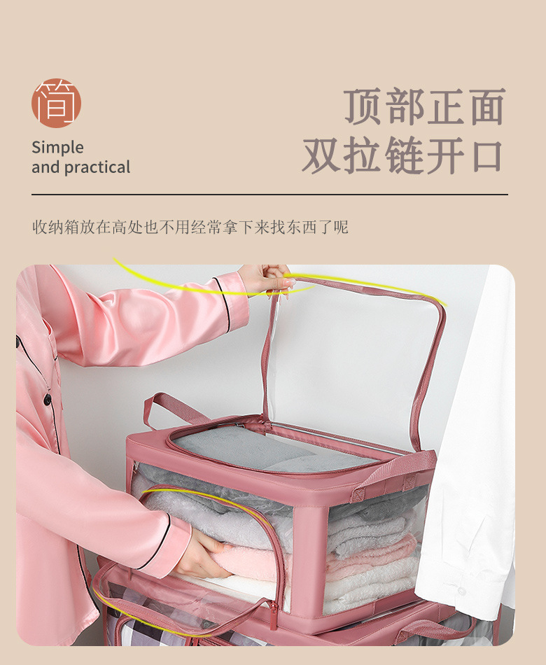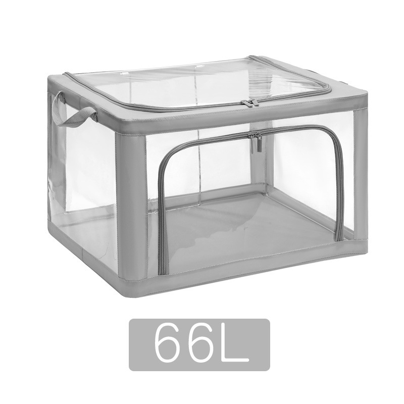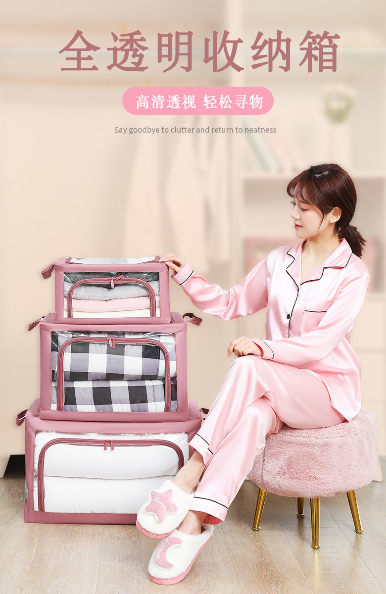 전체 투명 의류 보관 상자 모든 라운드 슈퍼 투명 접이식 스틸 프레임 저장 상자 옷 퀼트 마감 상자 이동