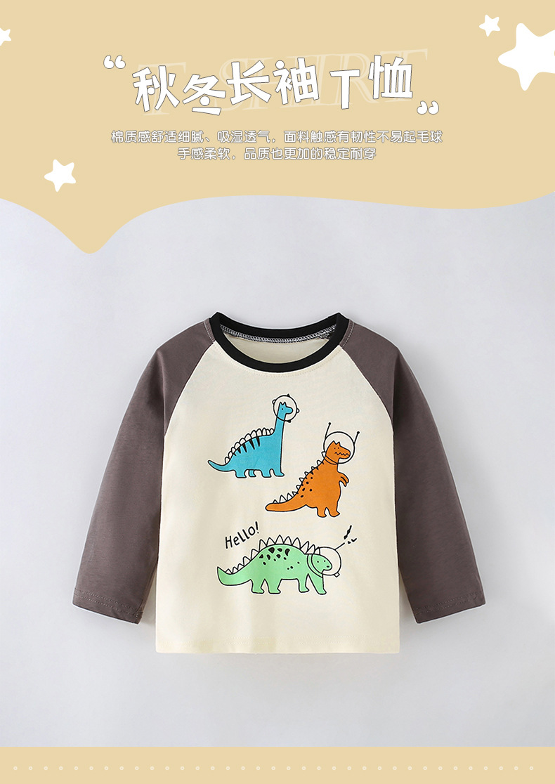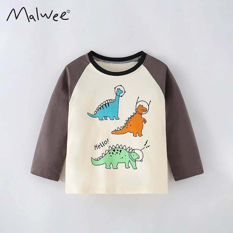 Malwee 어린이 티셔츠 가을 새로운 유럽과 미국 어린이 레저 라운드 넥 프린트 긴 소매 바닥
