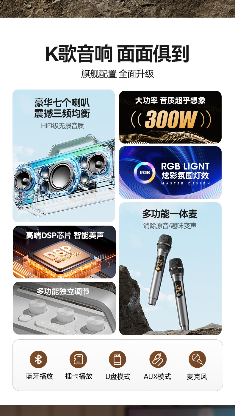 ClaisonK 노래 오디오 통합 마이크 사운드 카드 7 단위 스피커 300w 고성능 외부 스피커