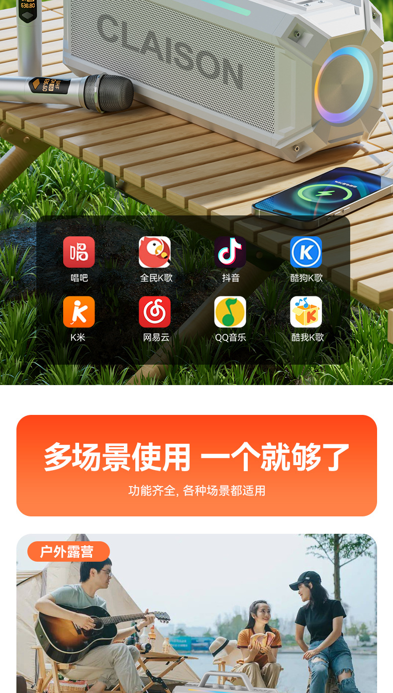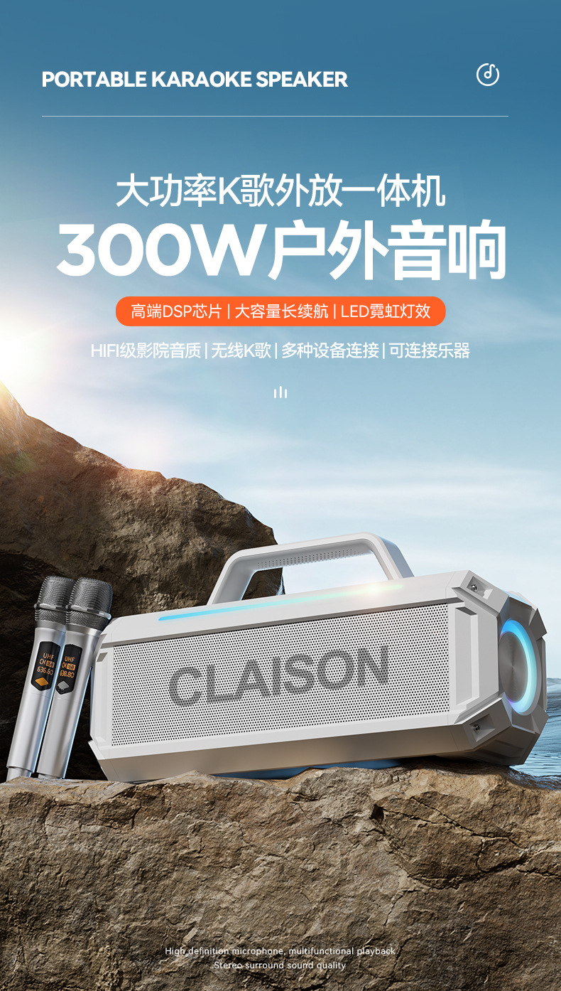 ClaisonK 노래 오디오 통합 마이크 사운드 카드 7 단위 스피커 300w 고성능 외부 스피커스토어 가기