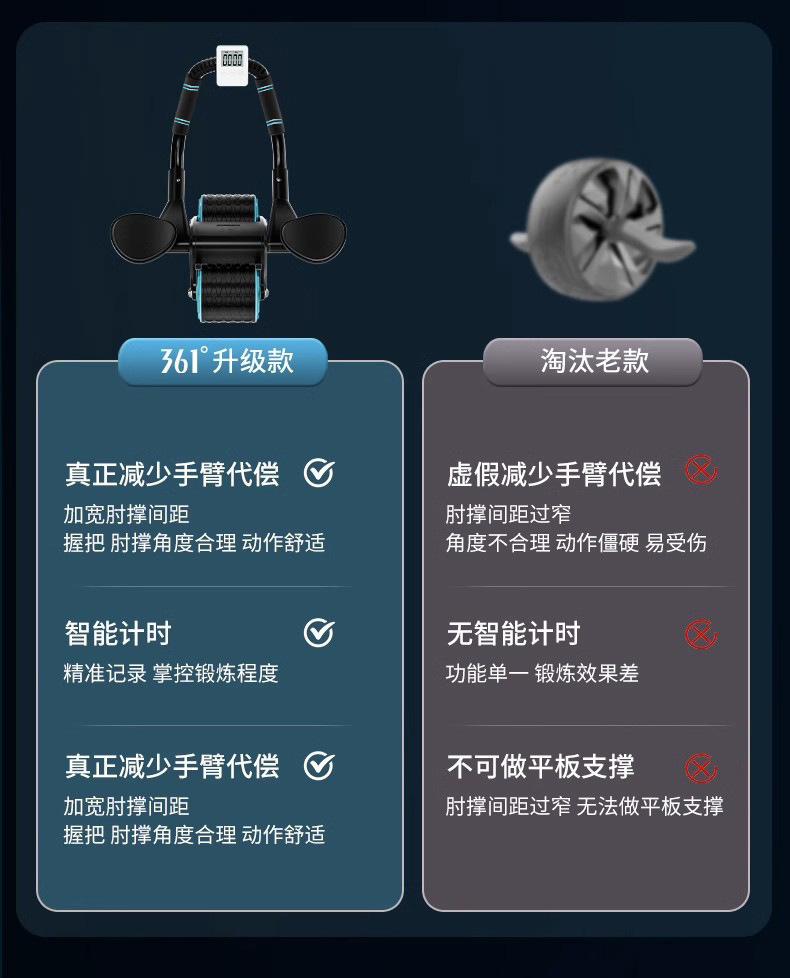 • 10cm 신형 플랭크 운동기구 - 블루블랙 (타이머 기능 포함)