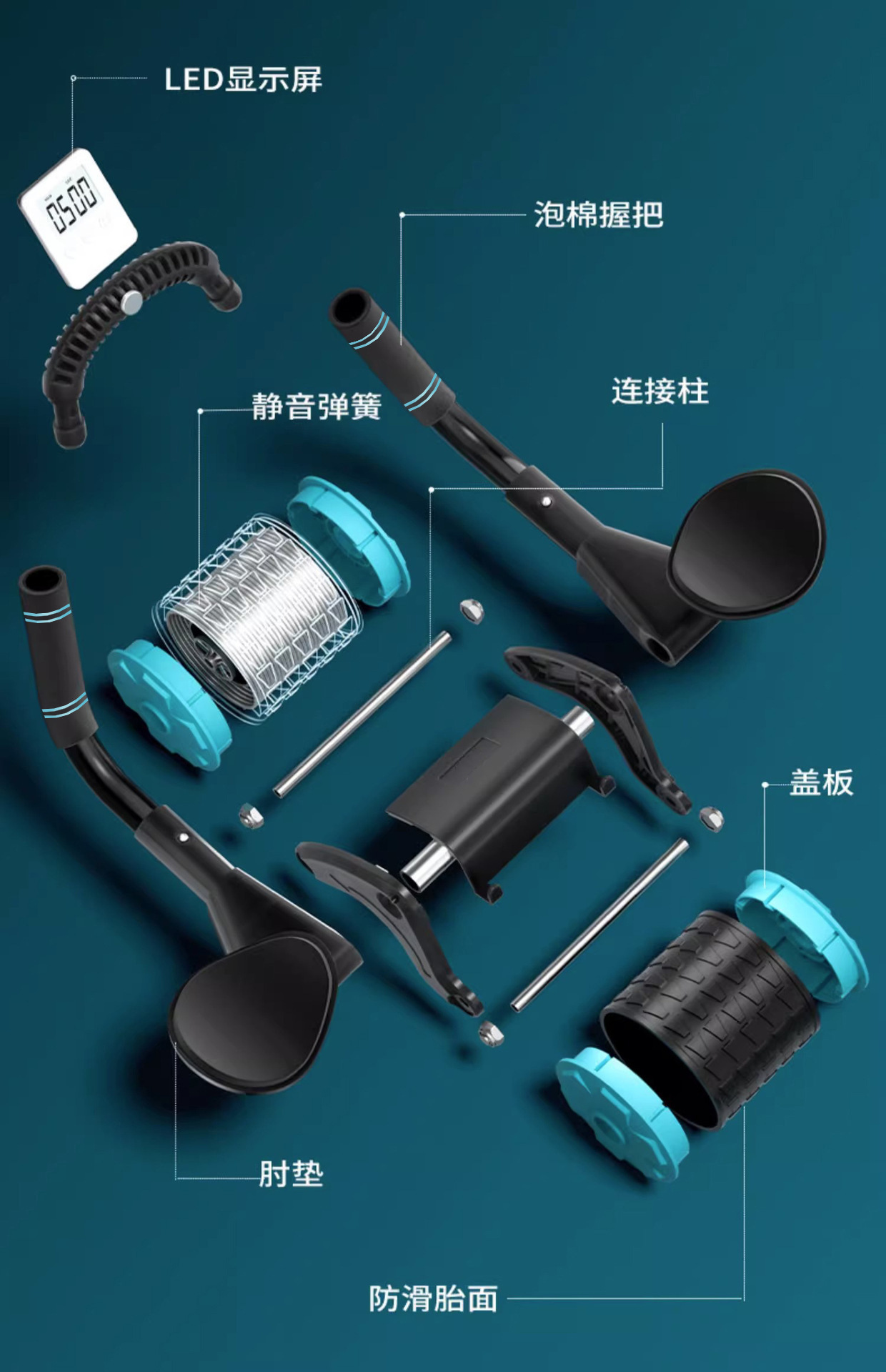• 10cm 신형 플랭크 복근 운동기구 - 하늘색 (타이머 기능 포함)
