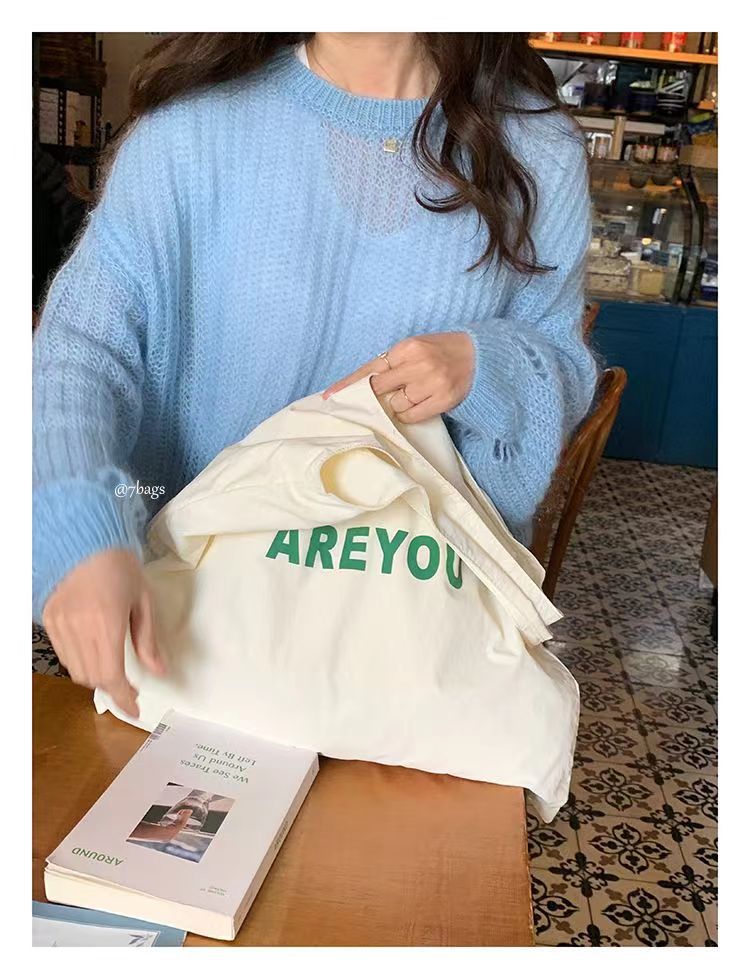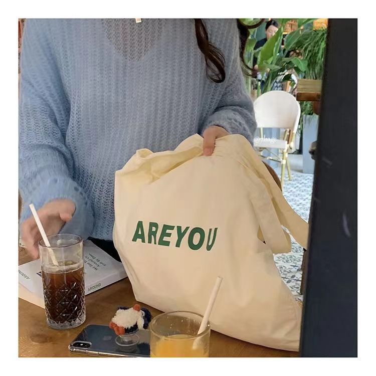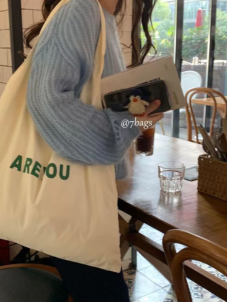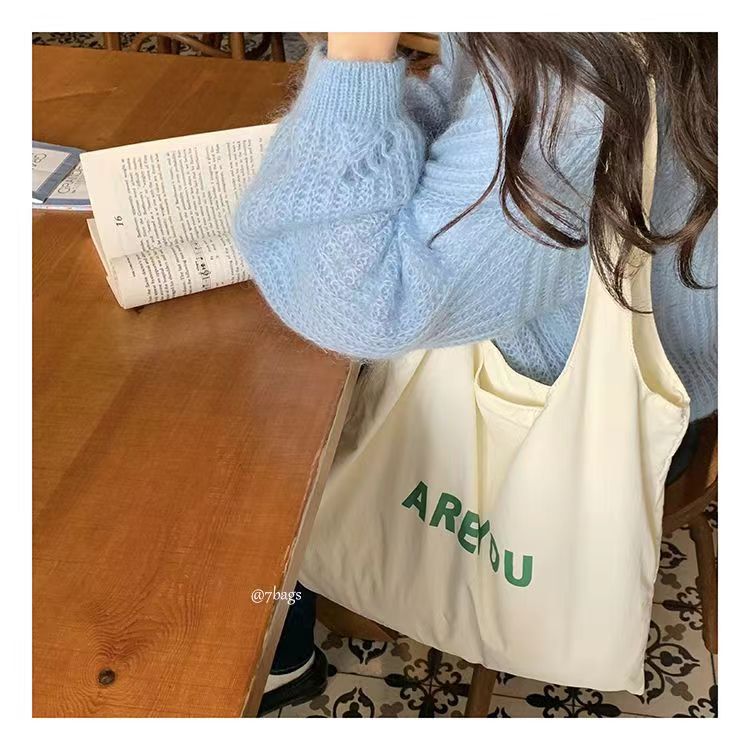 새로운 틈새 편지 인쇄 어깨 가방 대용량 디자이너 올 매치 헝겊 가방 여성용 캔버스 가방 트렌디 쇼핑백