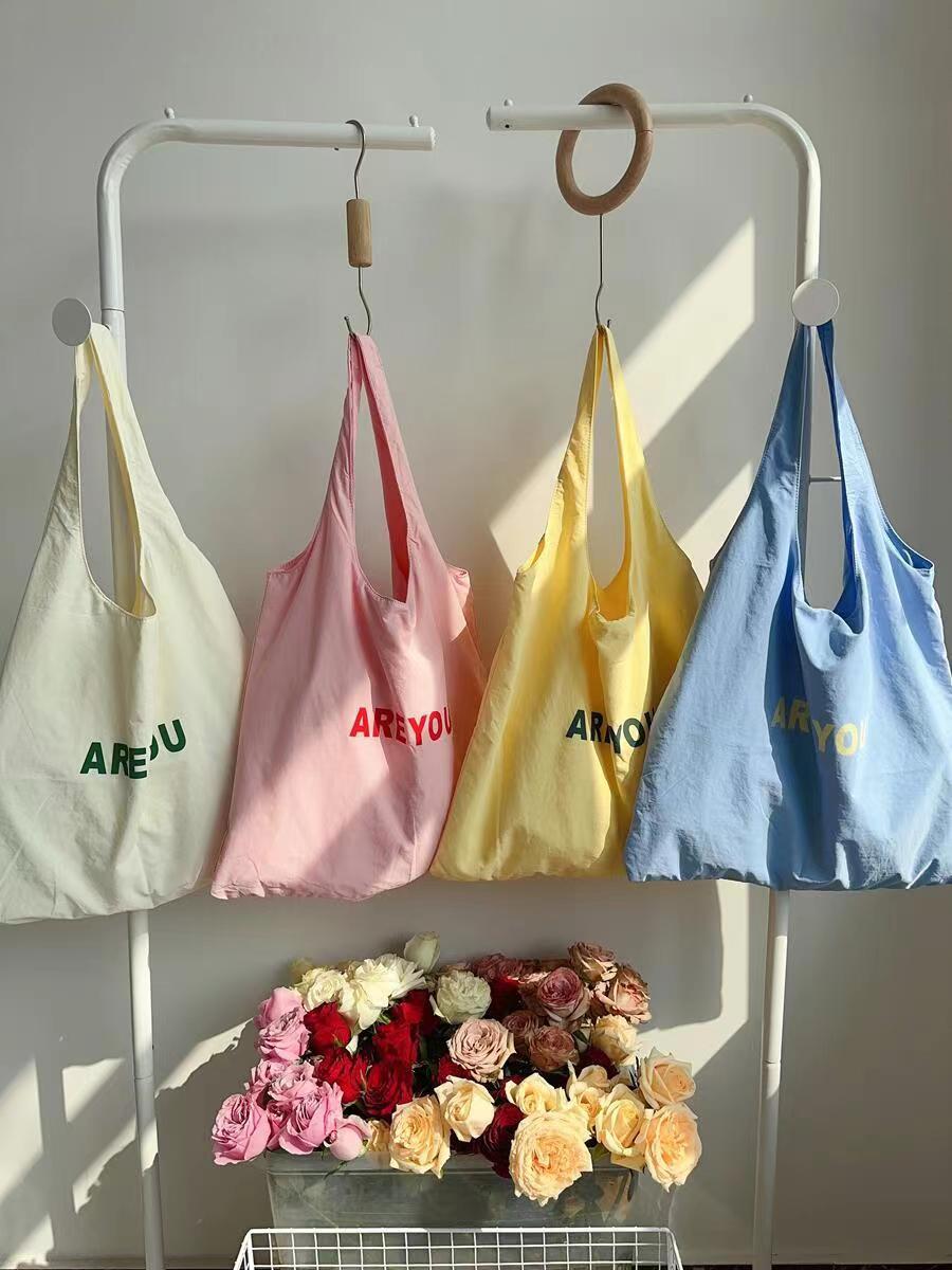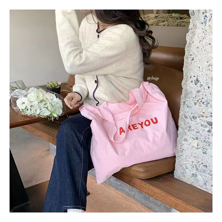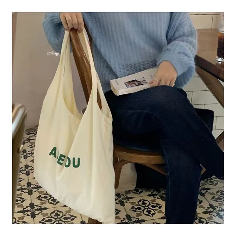 새로운 틈새 편지 인쇄 어깨 가방 대용량 디자이너 올 매치 헝겊 가방 여성용 캔버스 가방 트렌디 쇼핑백스토어 가기