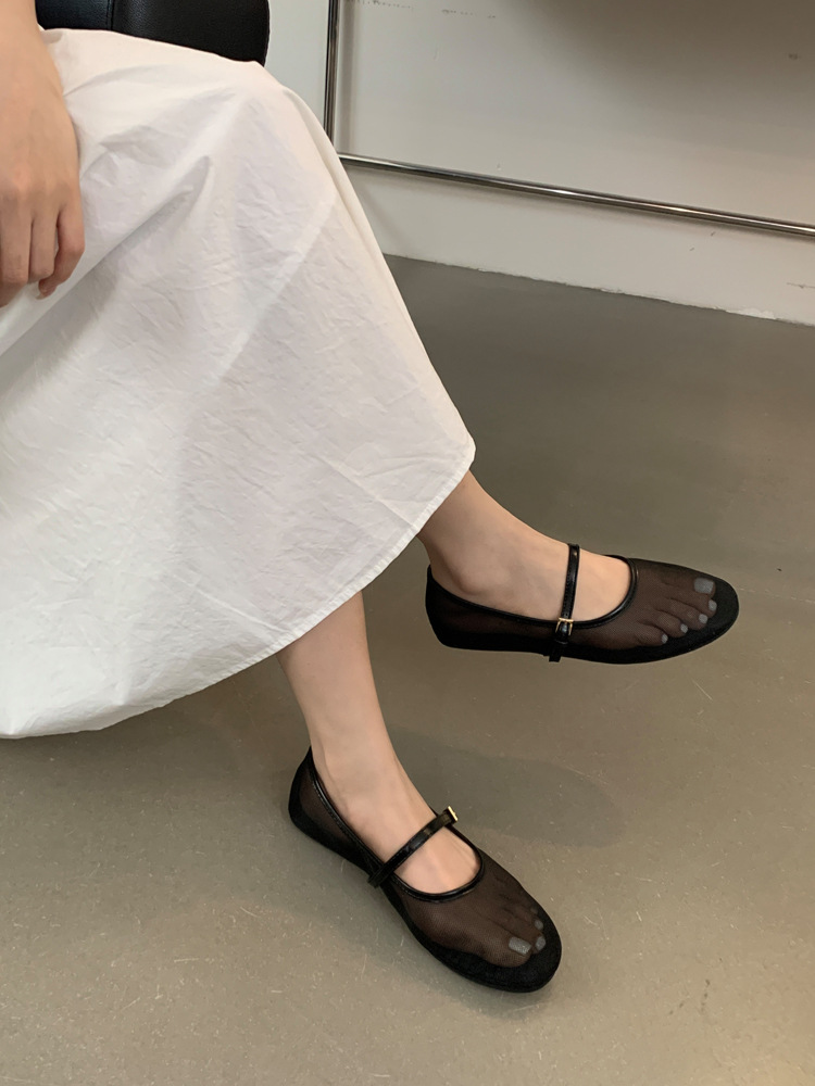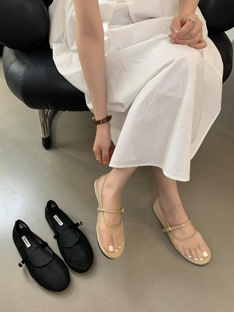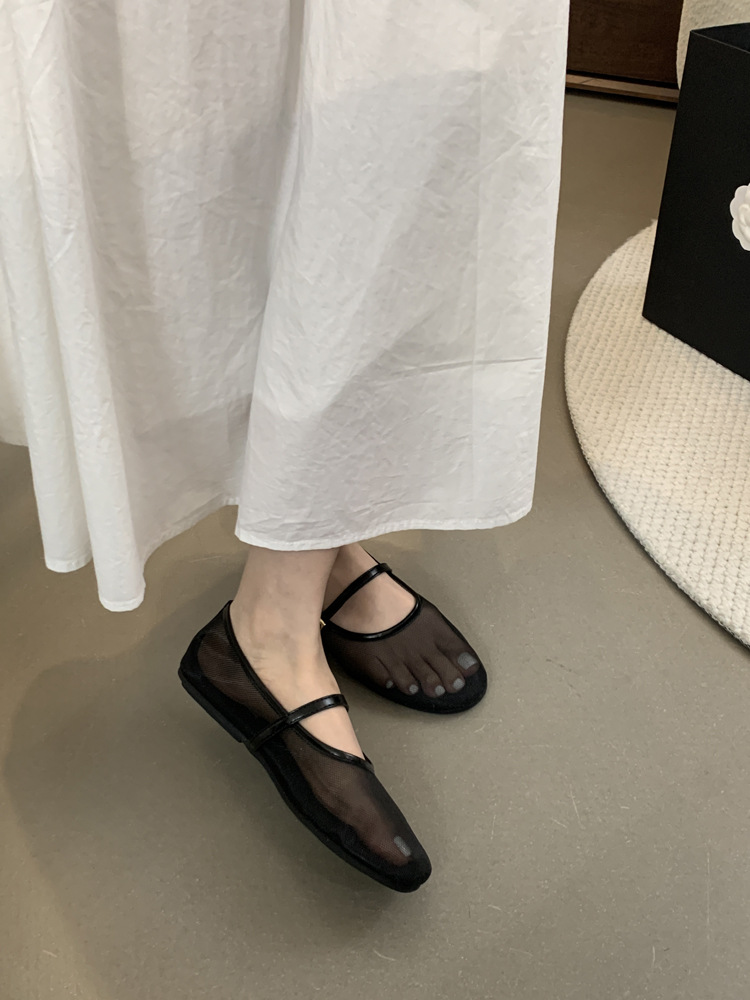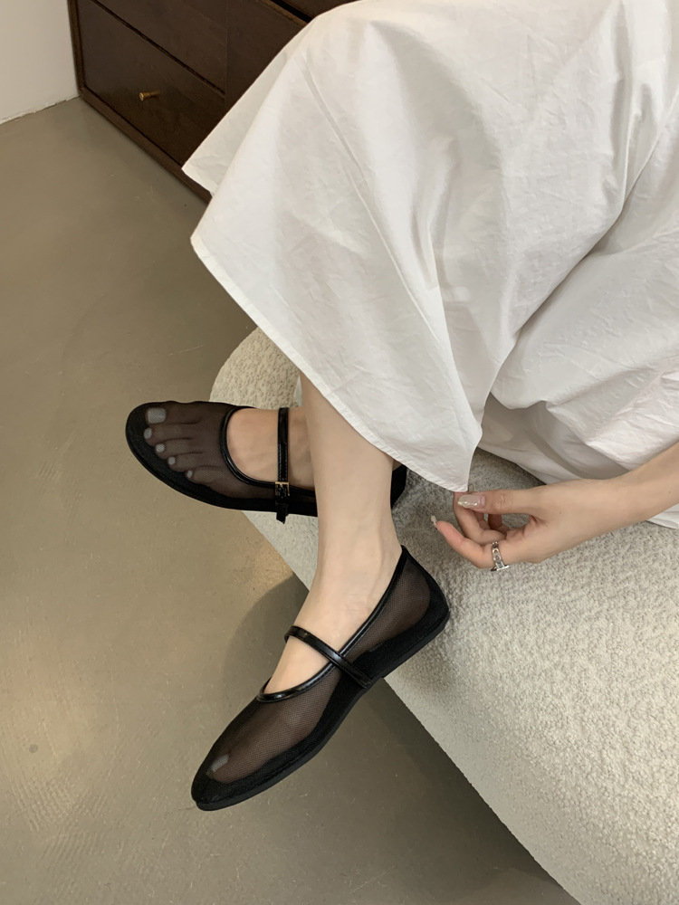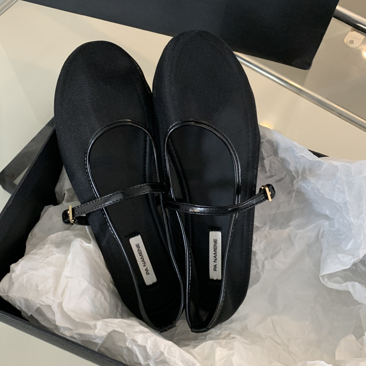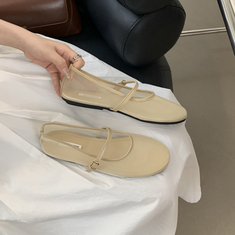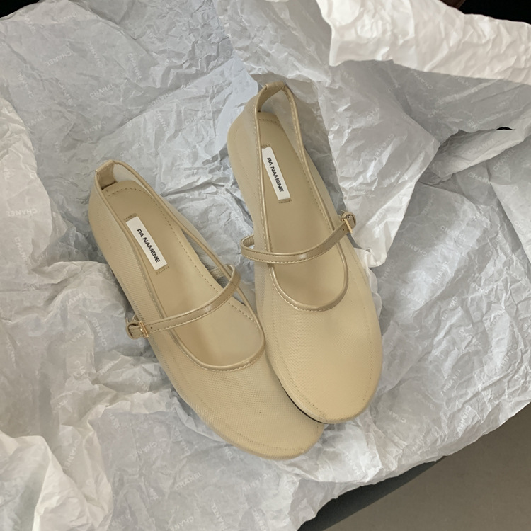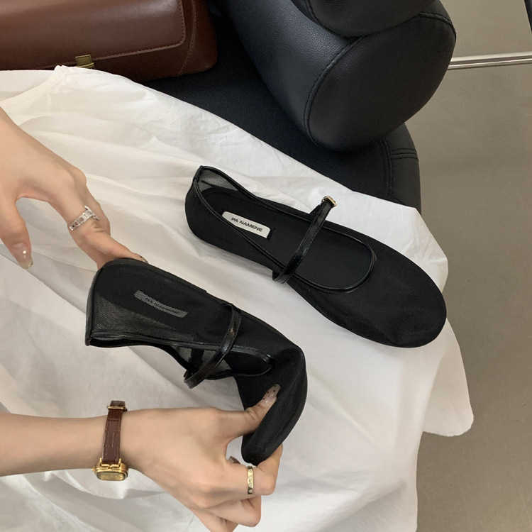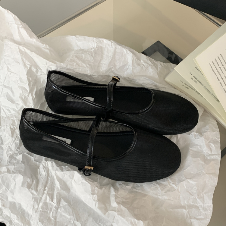 유럽 스타일 20256 봄 여름 신상 유럽풍 플랫 라운드 토 패션 메쉬 통기성 얕은 입구 싱글 슈즈 여성용 할머니 신발스토어 가기