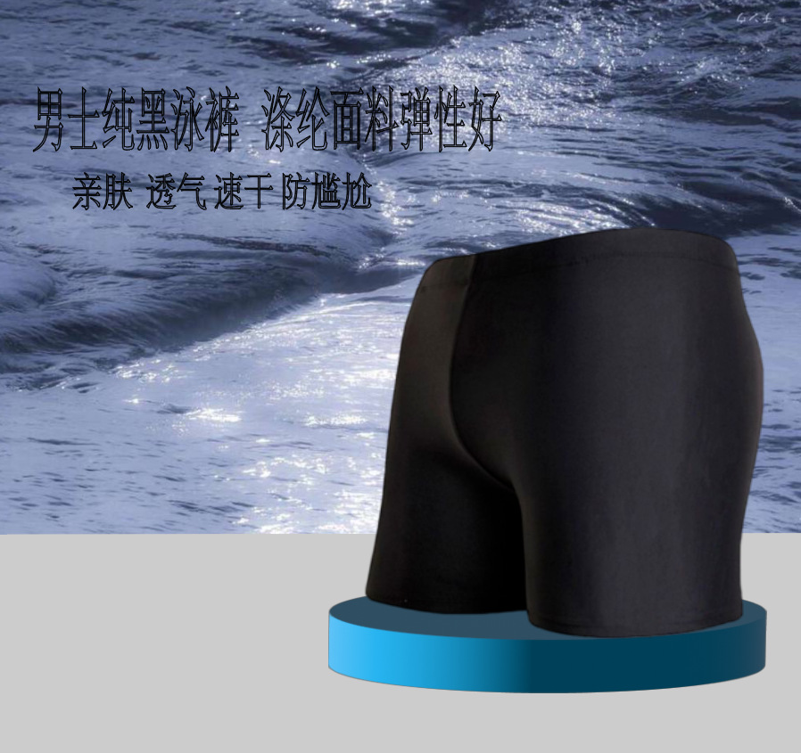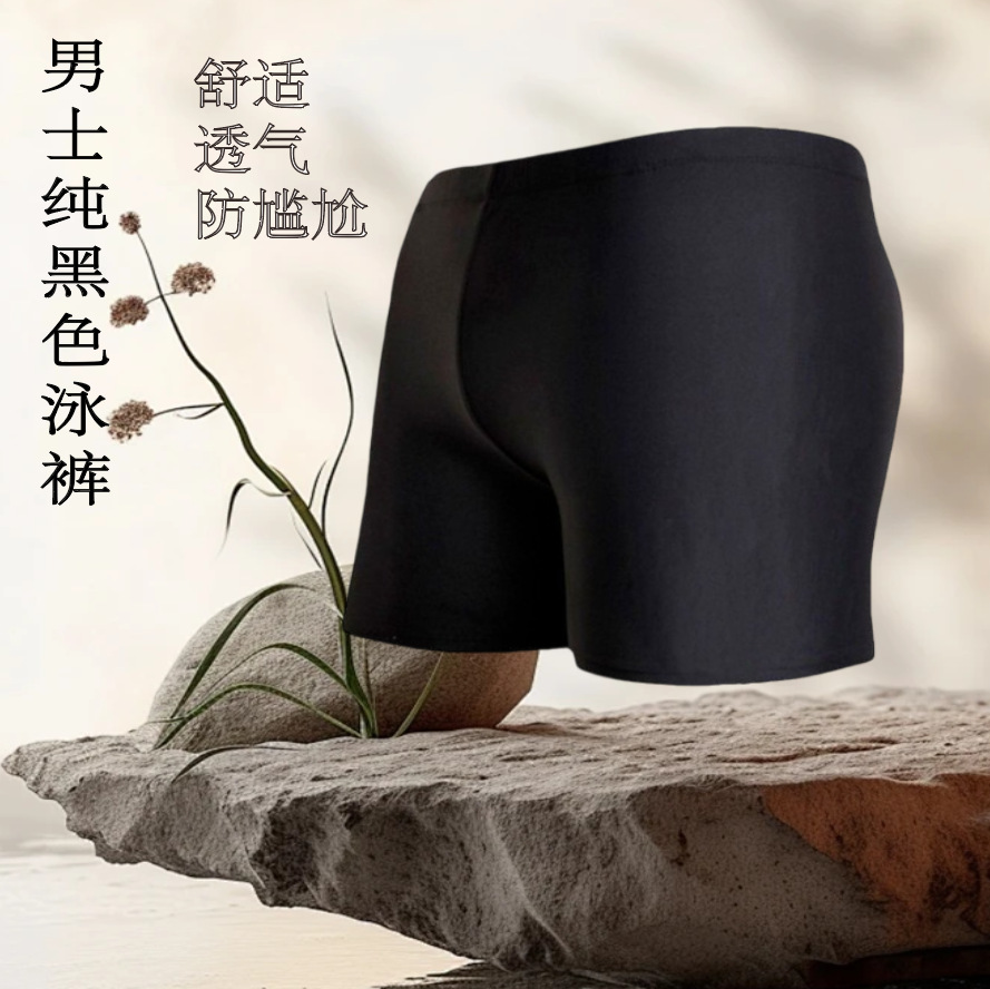 성인용 수영복, 순수 블랙 고탄력 사각 수영복, 피부 친화적이고 통기성 좋으며 빠르게 건조되는 남성용 수영복, 패셔너블한 온천 수영복스토어 가기