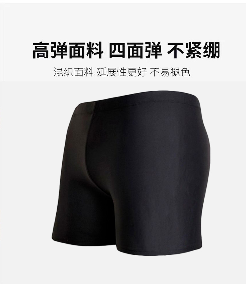 성인용 수영복, 순수 블랙 고탄력 사각 수영복, 피부 친화적이고 통기성 좋으며 빠르게 건조되는 남성용 수영복, 패셔너블한 온천 수영복