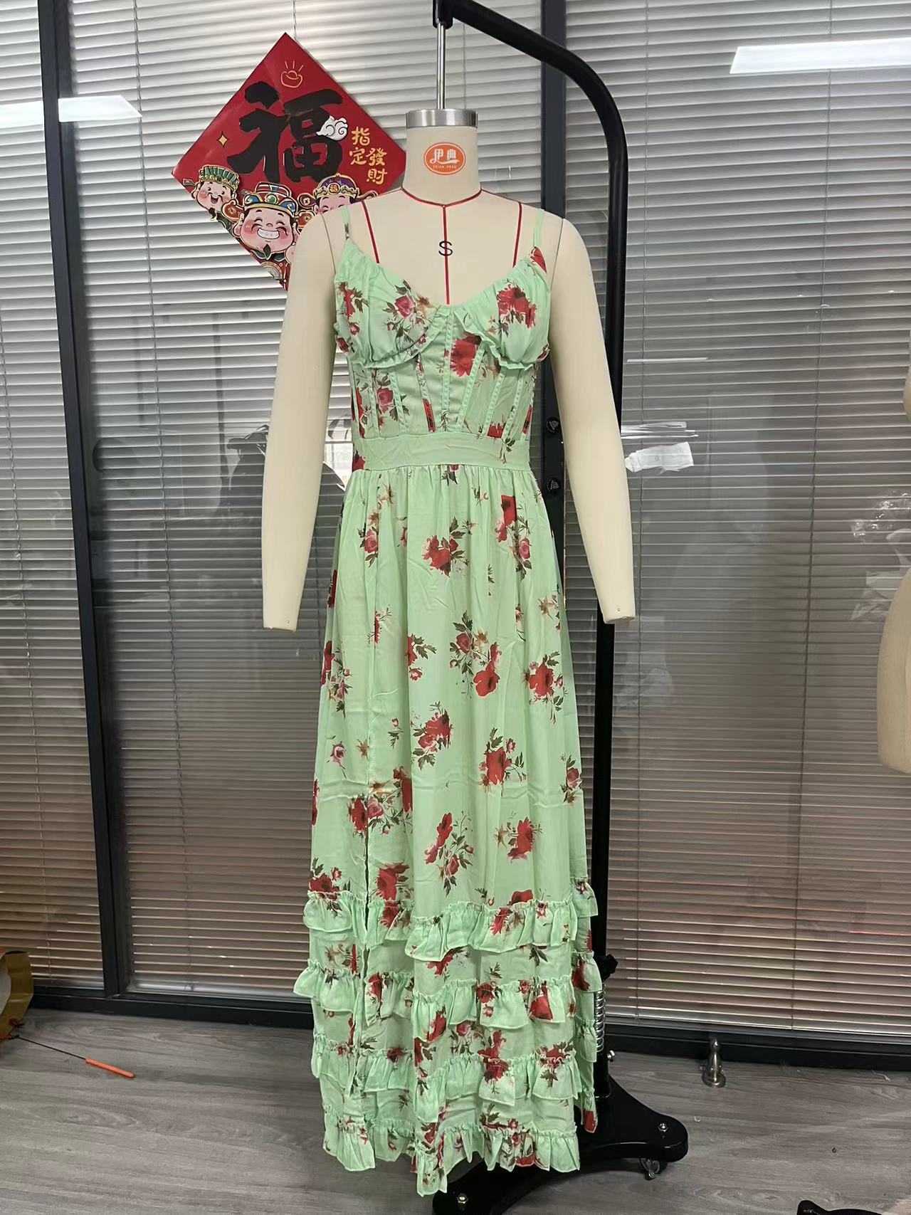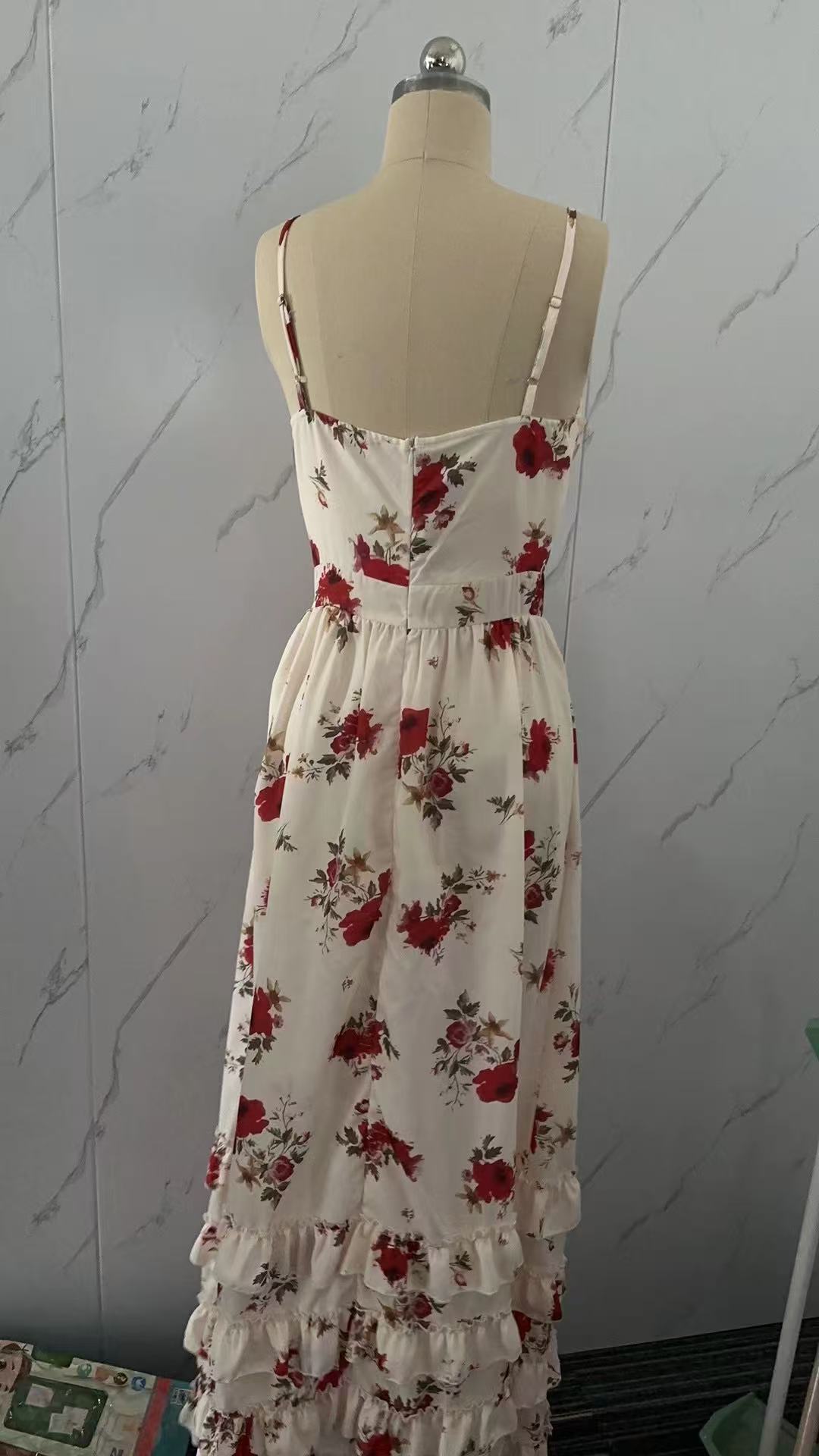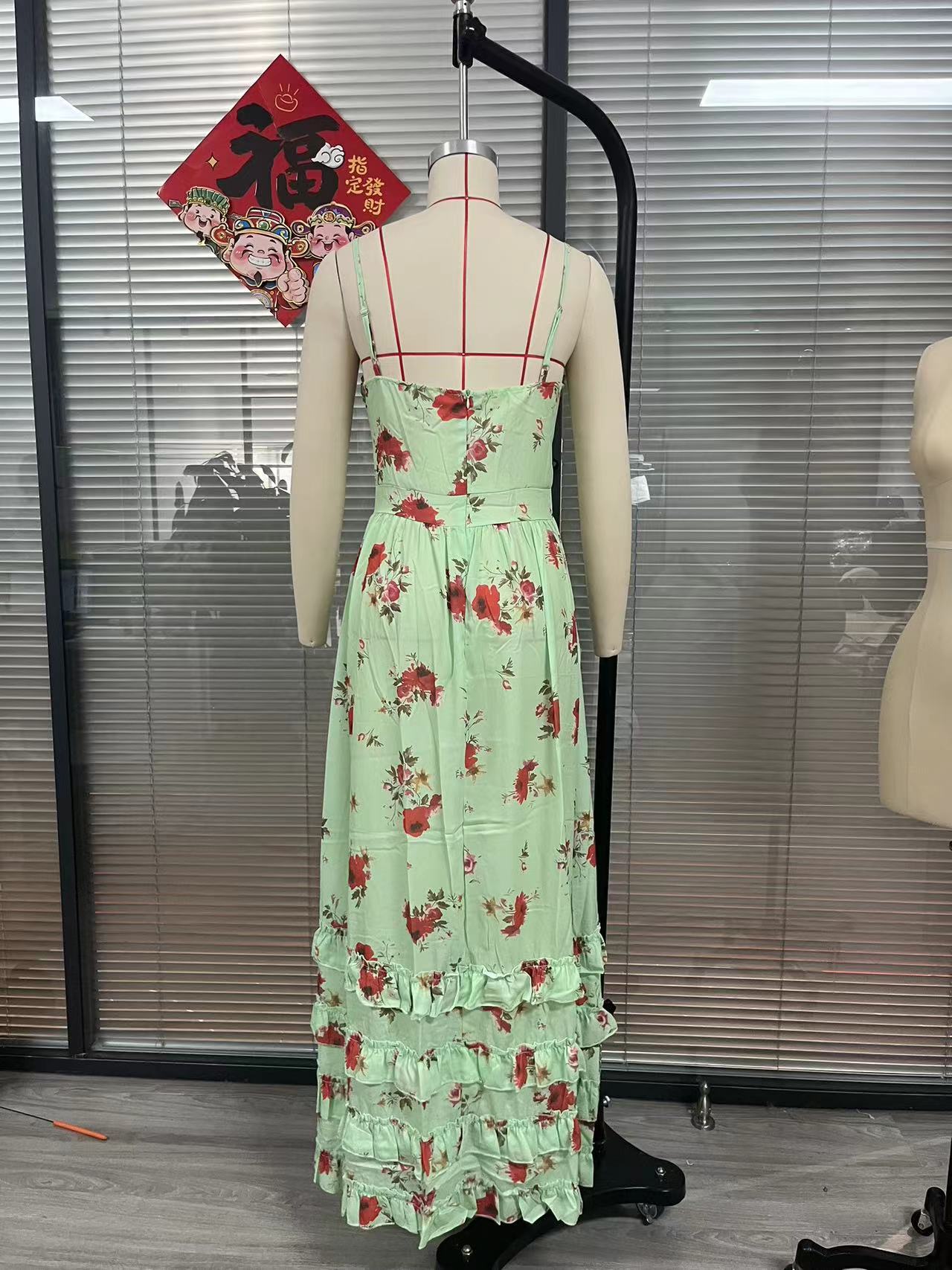아마존 국경 간 유럽과 미국 의류 새로운 핫 판매 쉬폰 프린트 시스루 슬릿 서스펜더 드레스