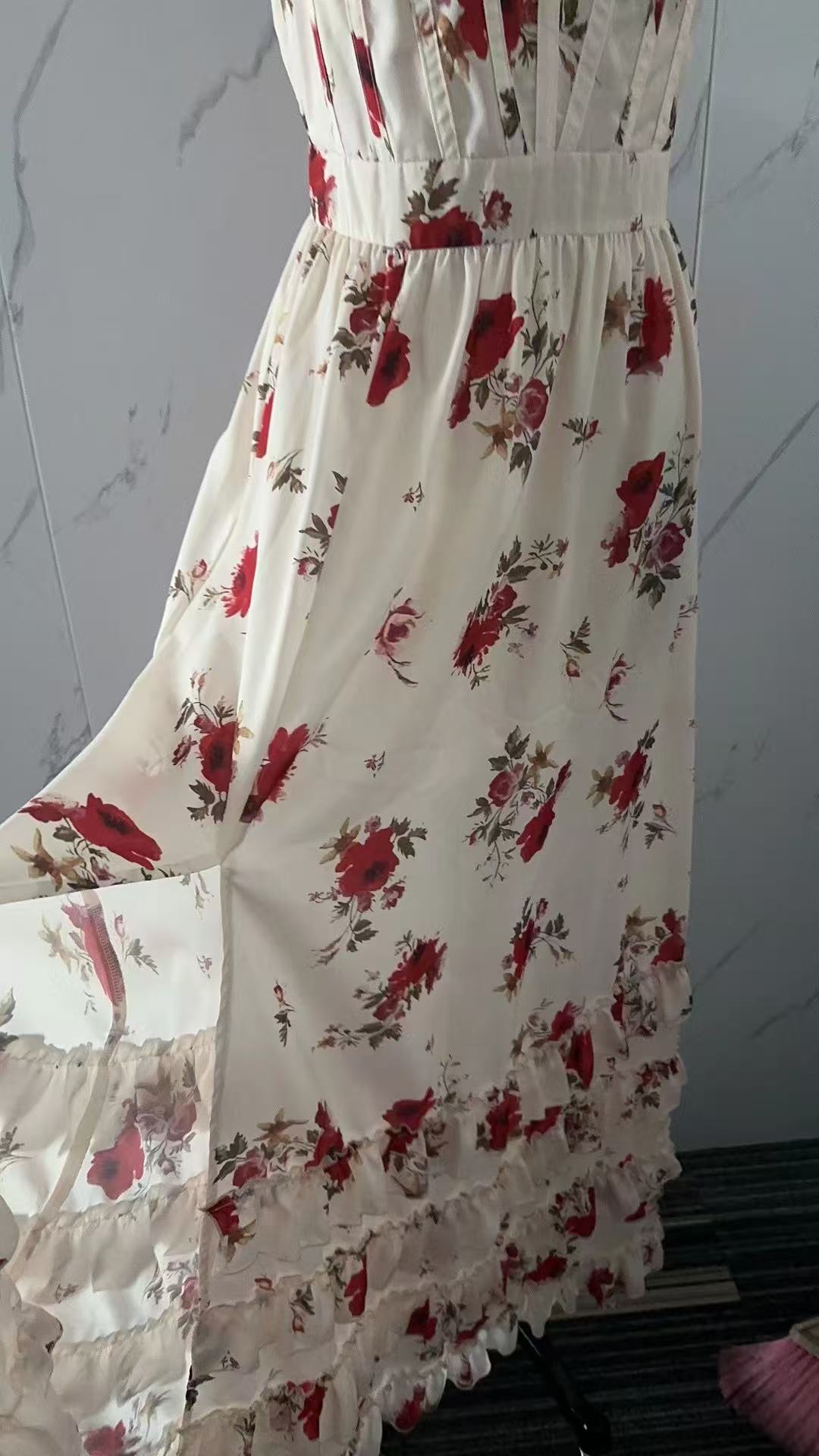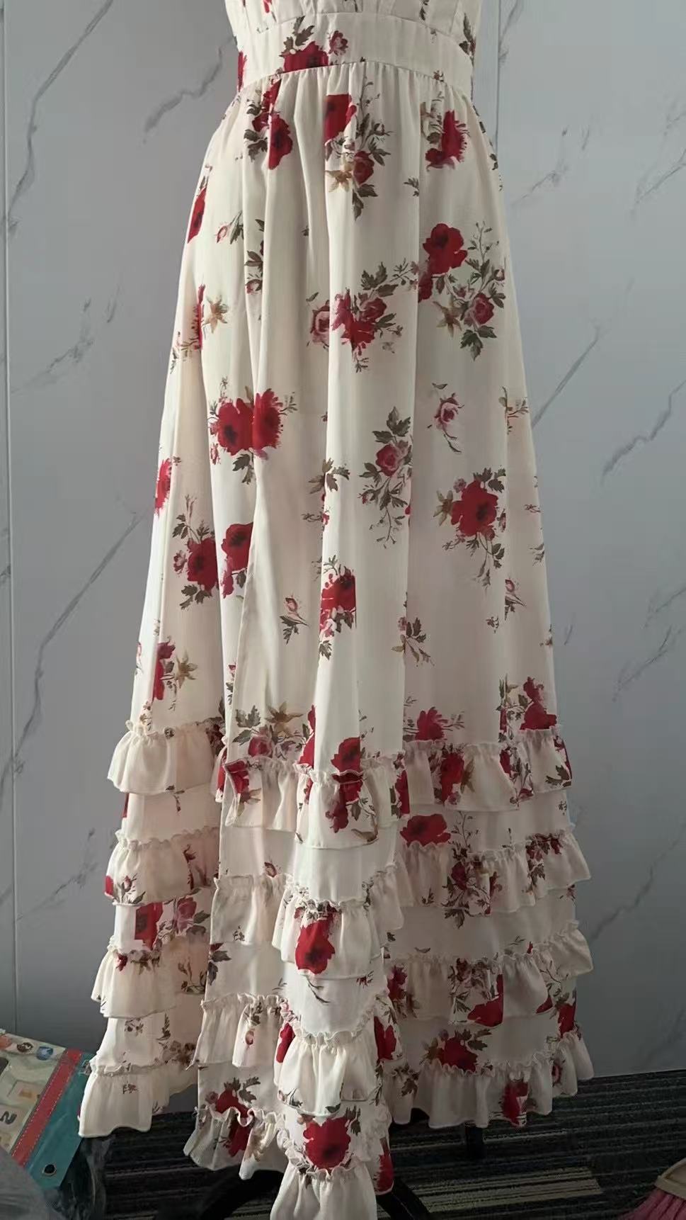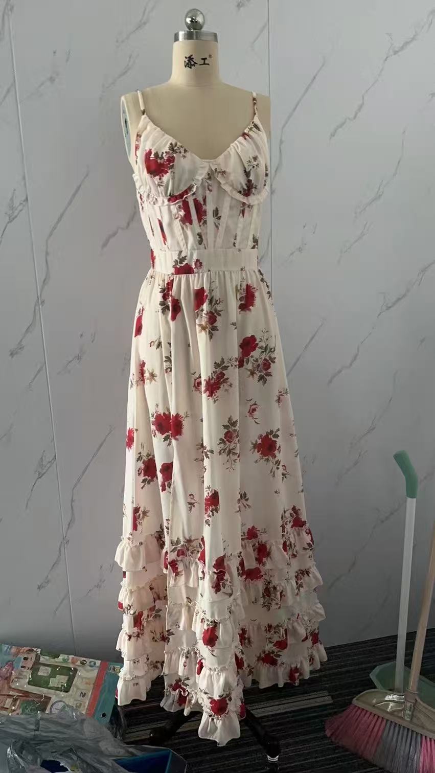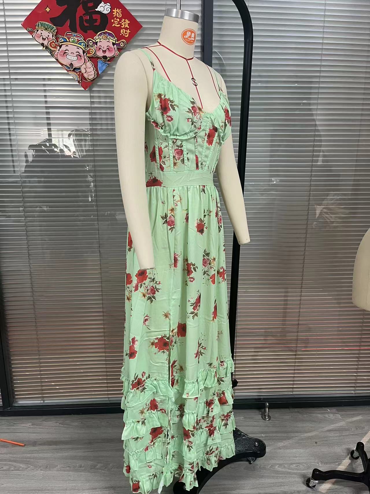 아마존 국경 간 유럽과 미국 의류 새로운 핫 판매 쉬폰 프린트 시스루 슬릿 서스펜더 드레스